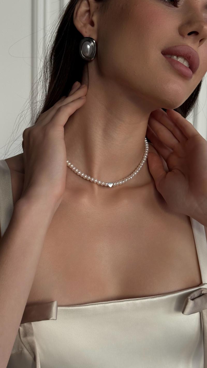 Чокер з натуральних перлин з додаванням перламутрових сердець