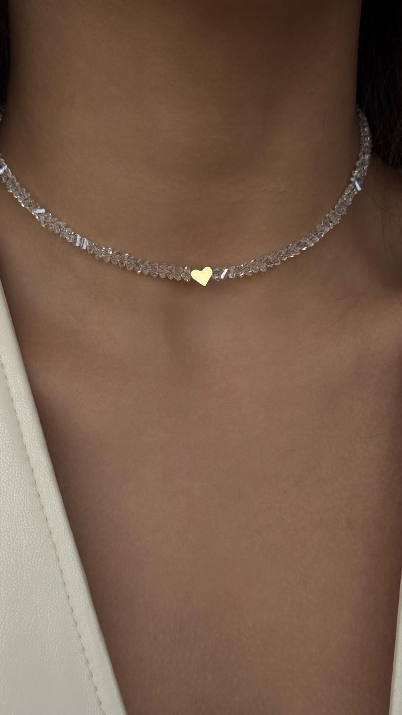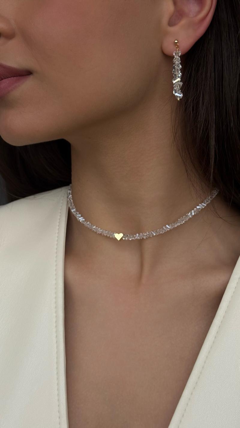 Сяючий чокер з прозорого кришталю із серцем