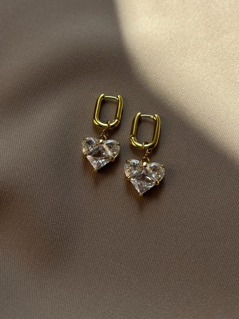 Сережки у формі серця з блискучим фіанітом