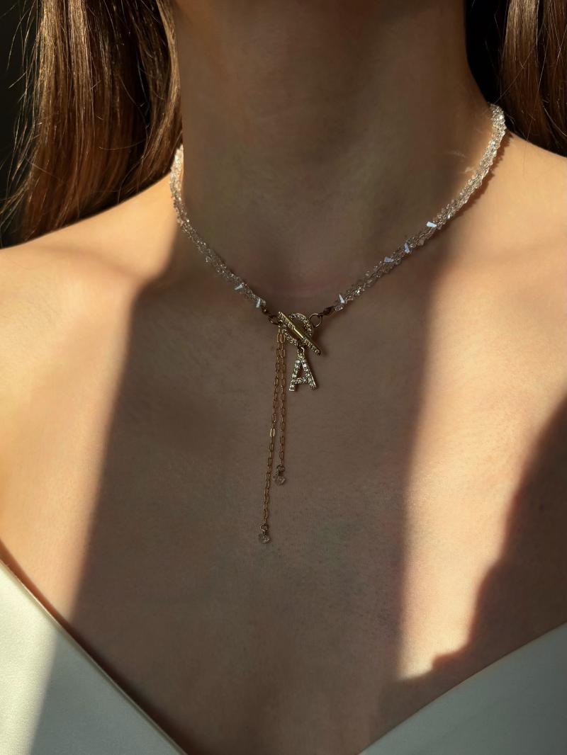 Кольє з прозорого кришталю з літерою