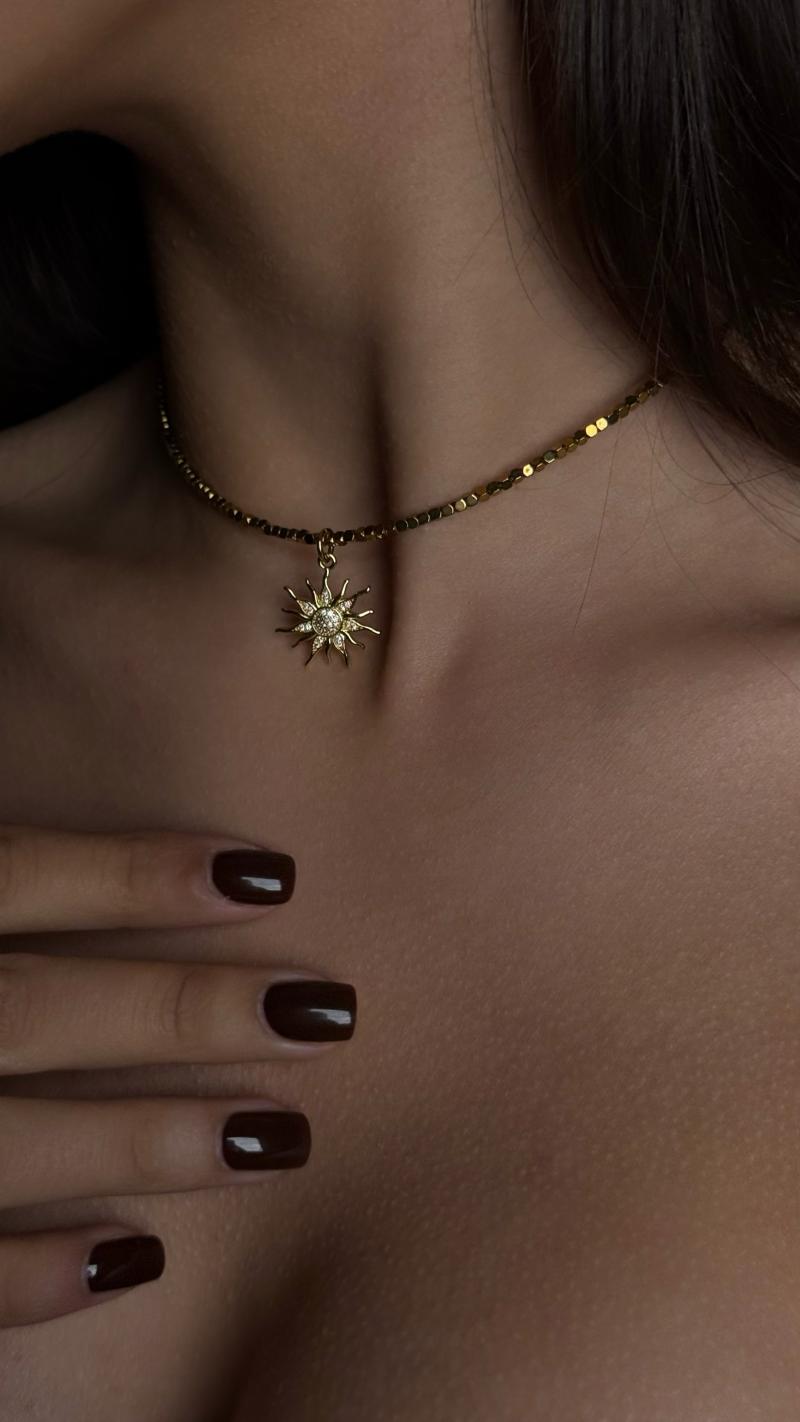 Сяючий чокер з натурального гематиту з кулоном сонце