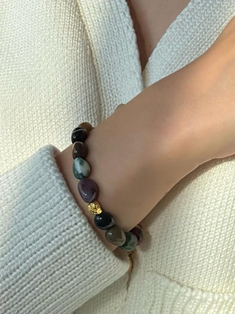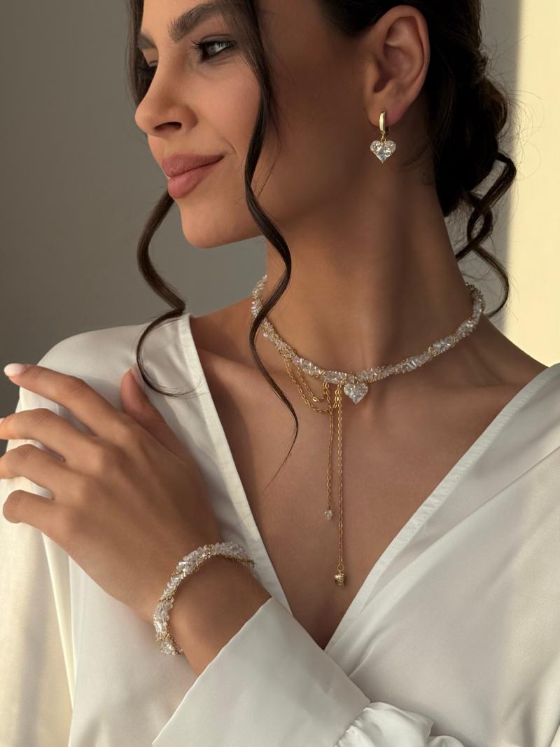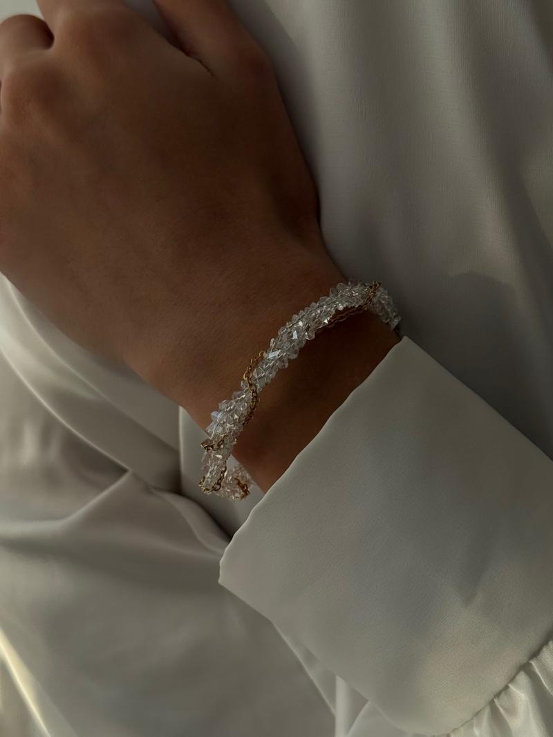Акцентний браслет з відбірного кришталю та ланцюжків