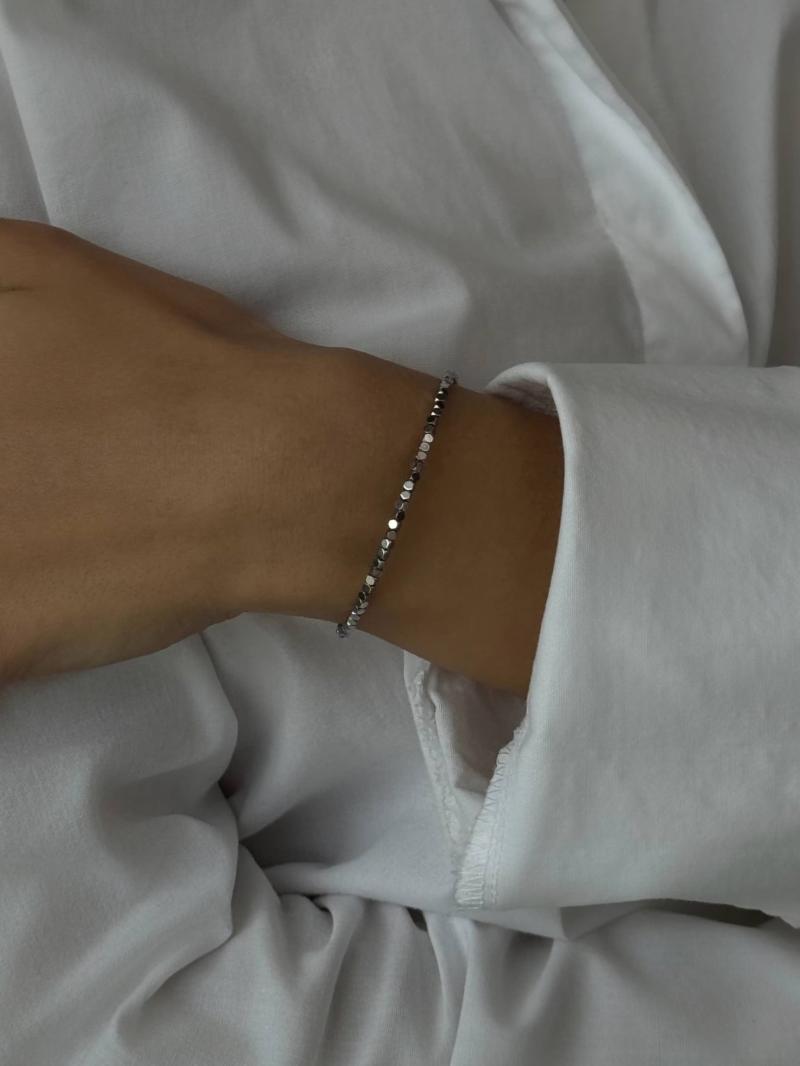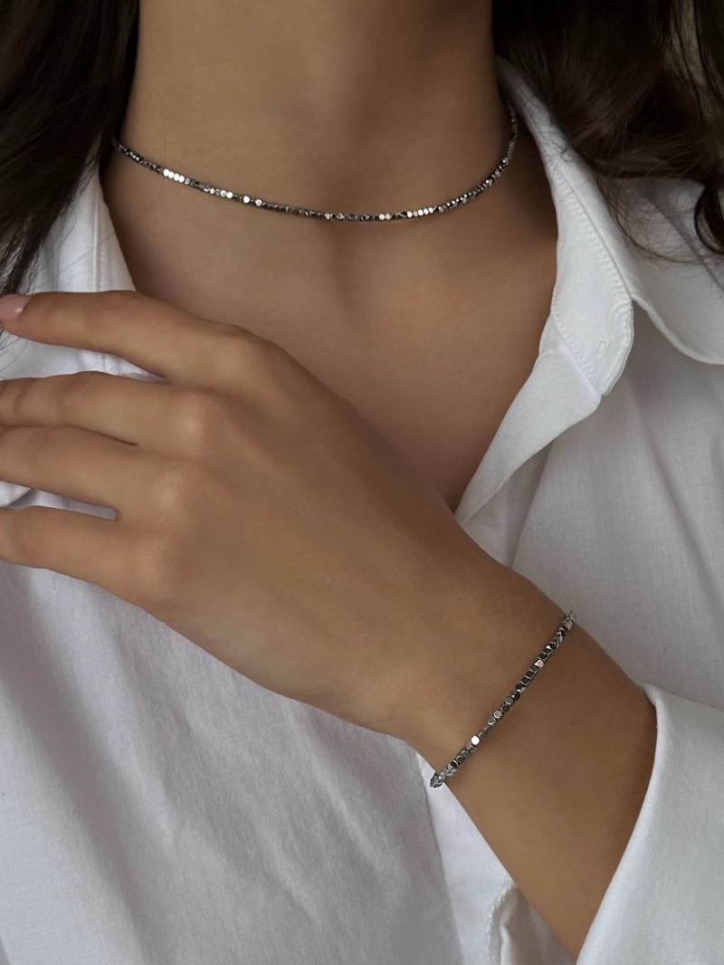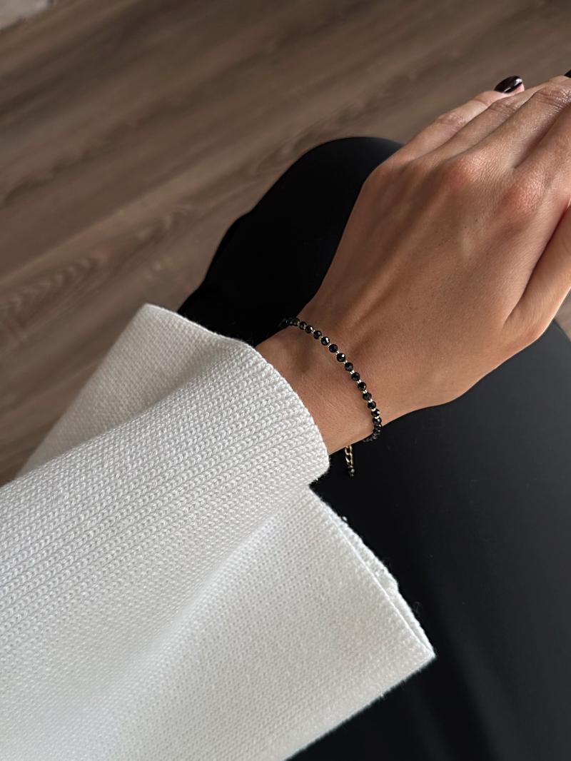 Акцентний браслет з чорних фіанітів та ланцюжків