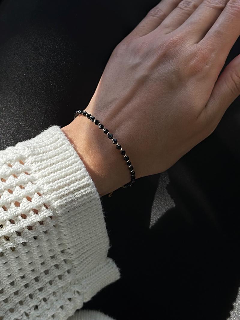 Сяючий браслет з чорних фіанітів та японського бісеру