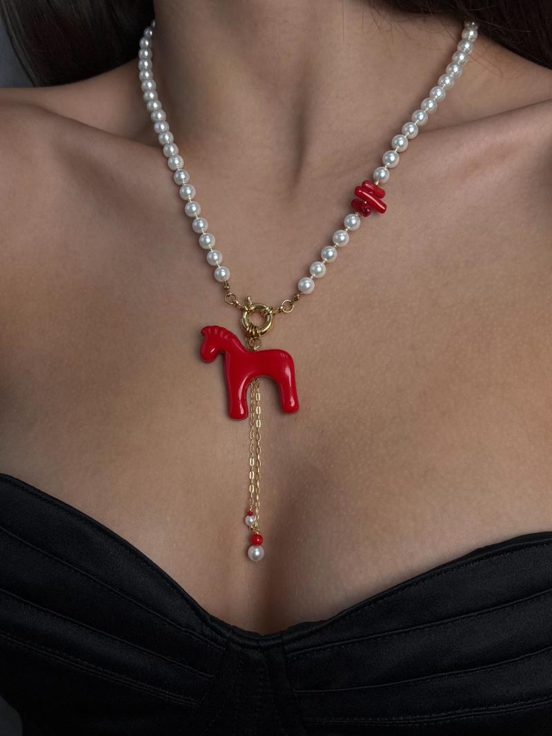 Кольє з перлин Майорка з ланцюжками та кулоном