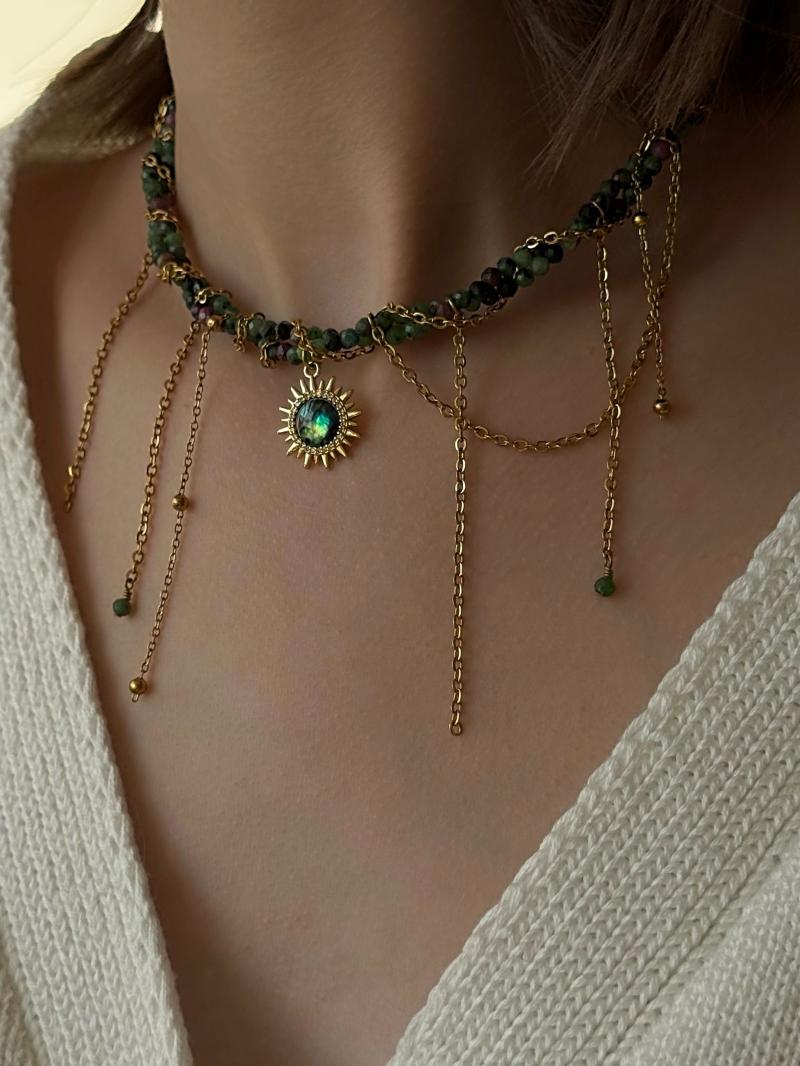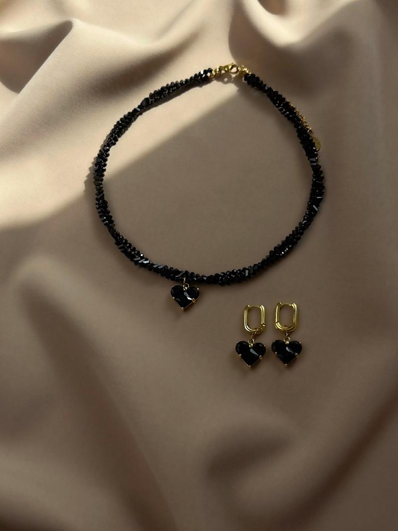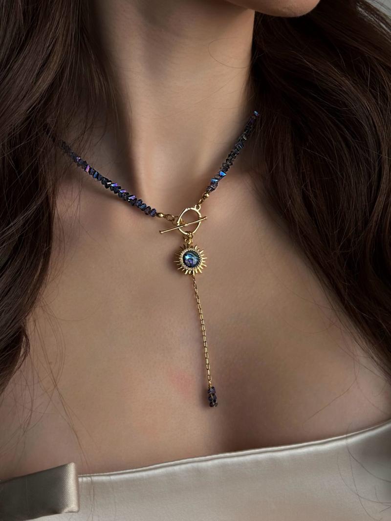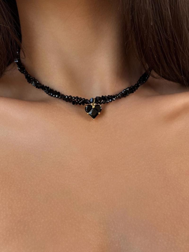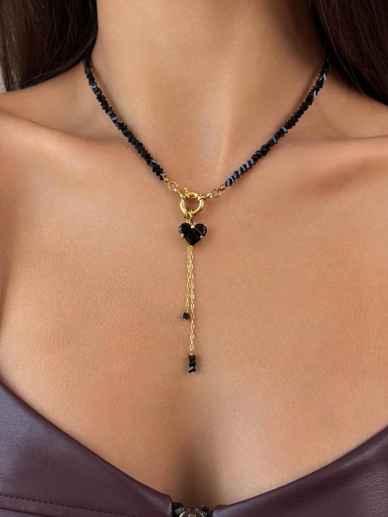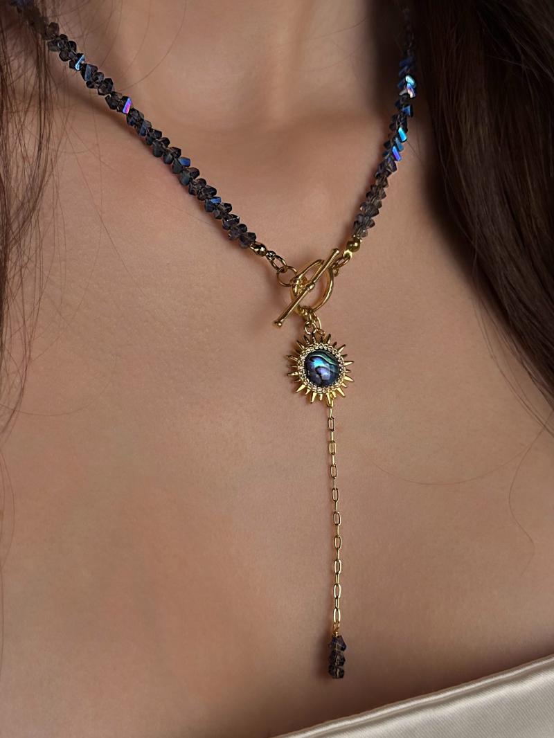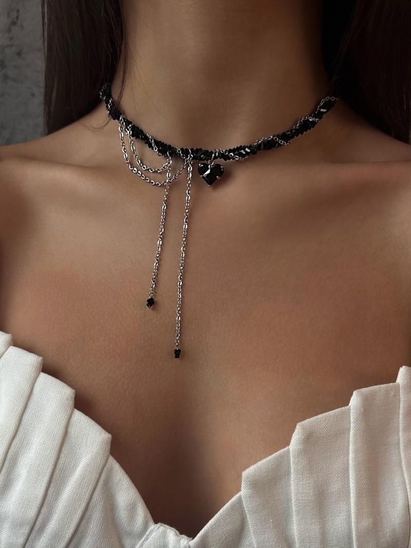 Кольє з чорного кришталю з ланцюжками та кулоном