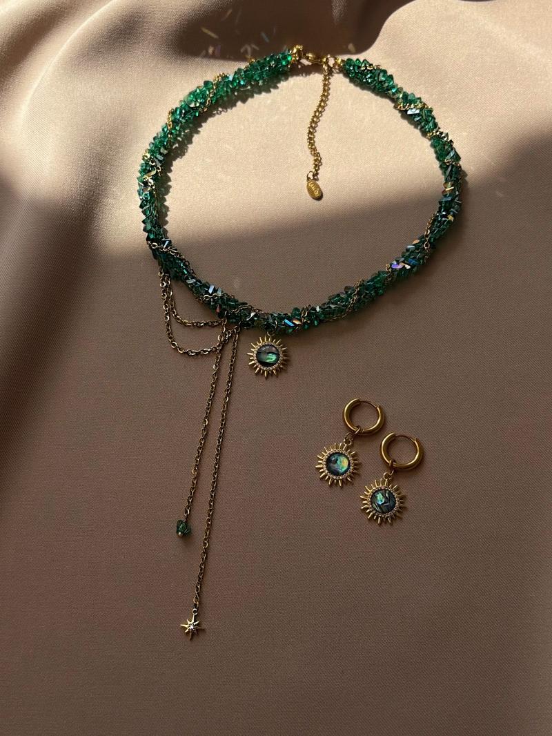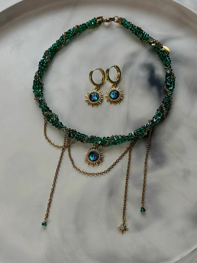 Кольє з кришталю та ланцюжка з блакитним серцем