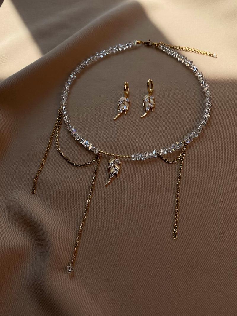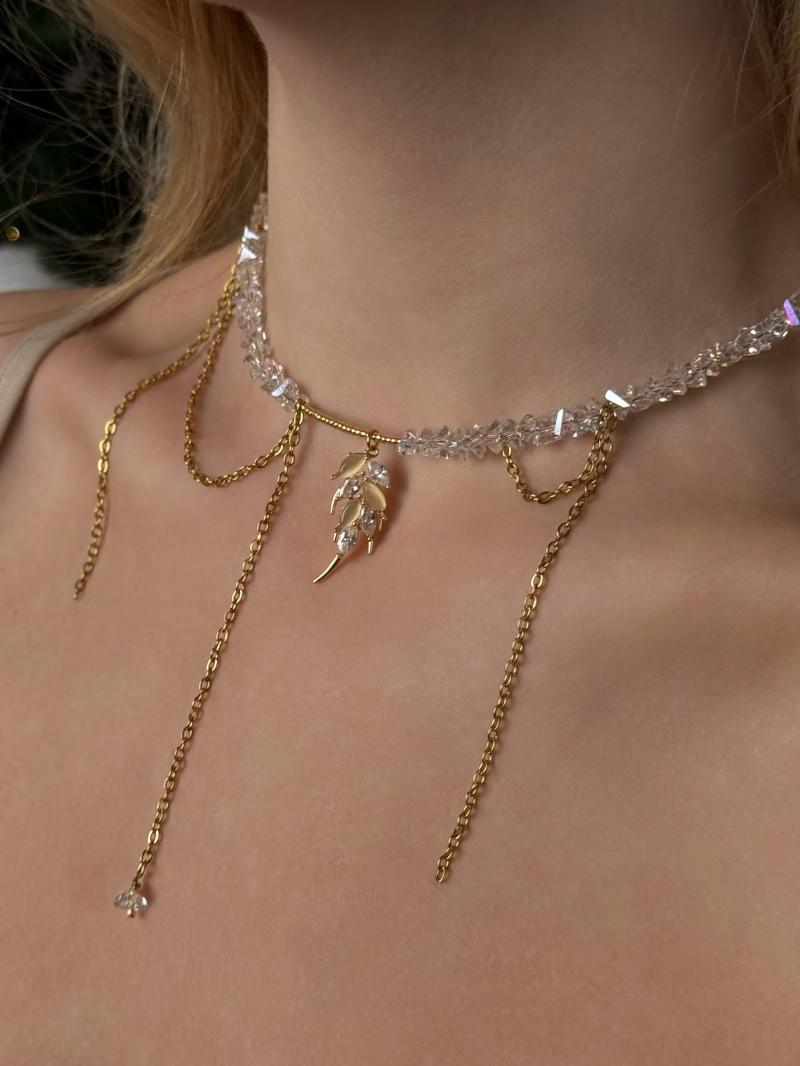 Кольє з прозорого кришталю зі з'ємною краваткою