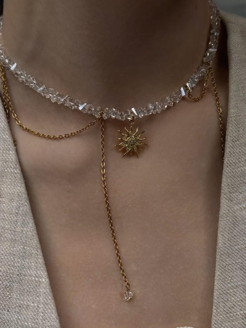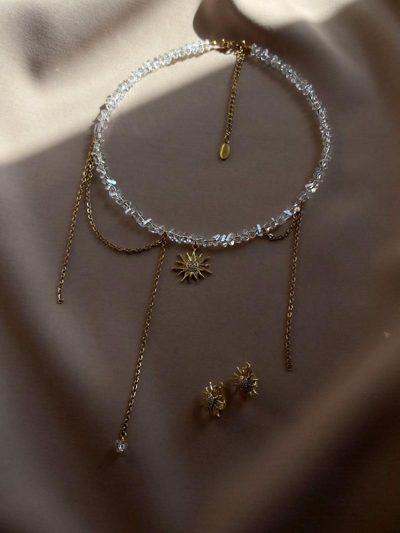 Кольє з прозорого кришталю та ланцюжка з кулоном сонце
