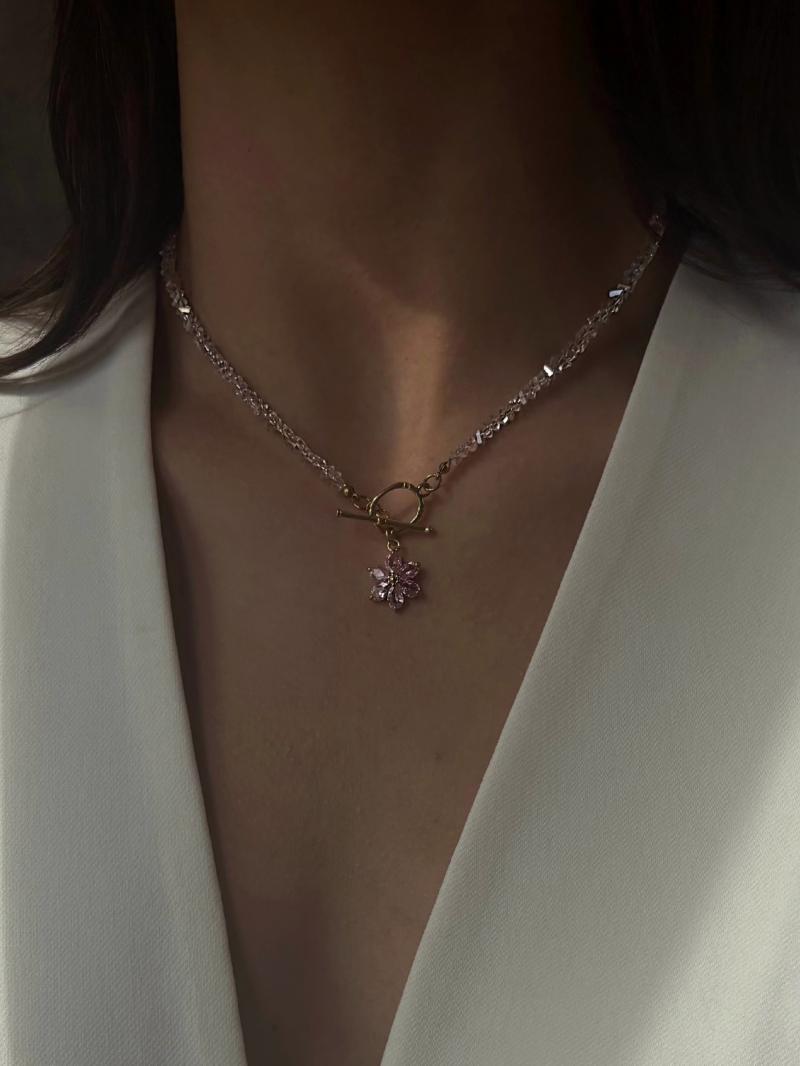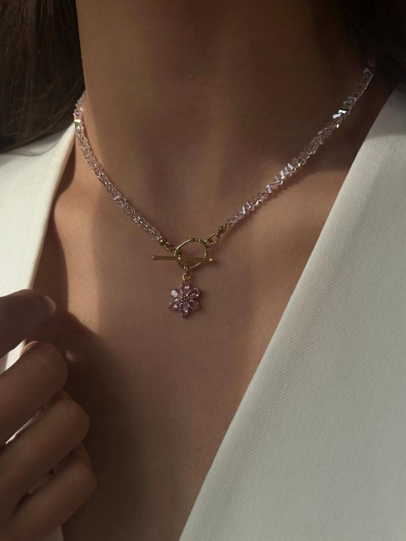 Кольє з відбірного рожевого кришталю з квіткою