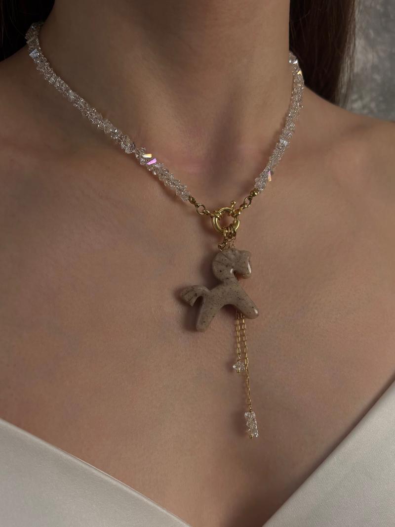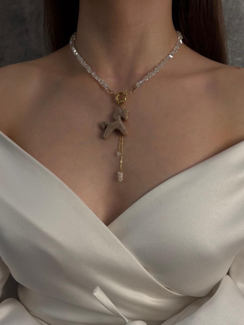 Кольє з відбірного прозорого кришталю з акцентною застібкою та кулоном