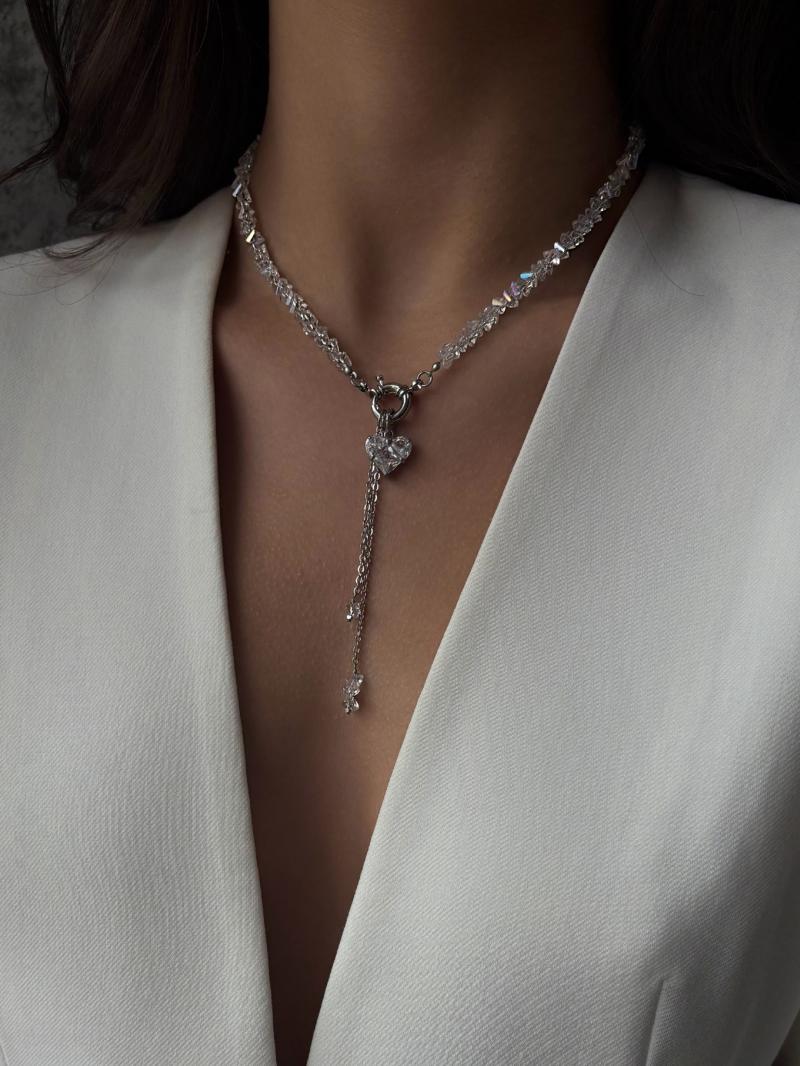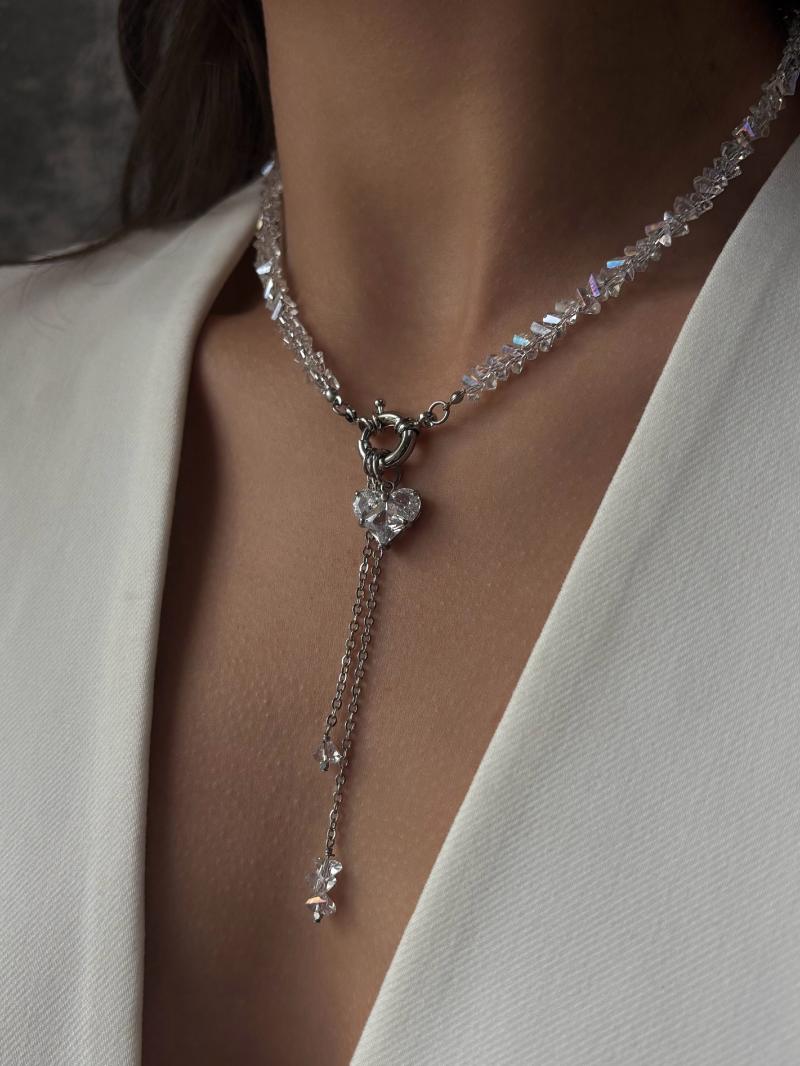 Комбіноване кольє з кришталю та ланцюжків з кулоном серце