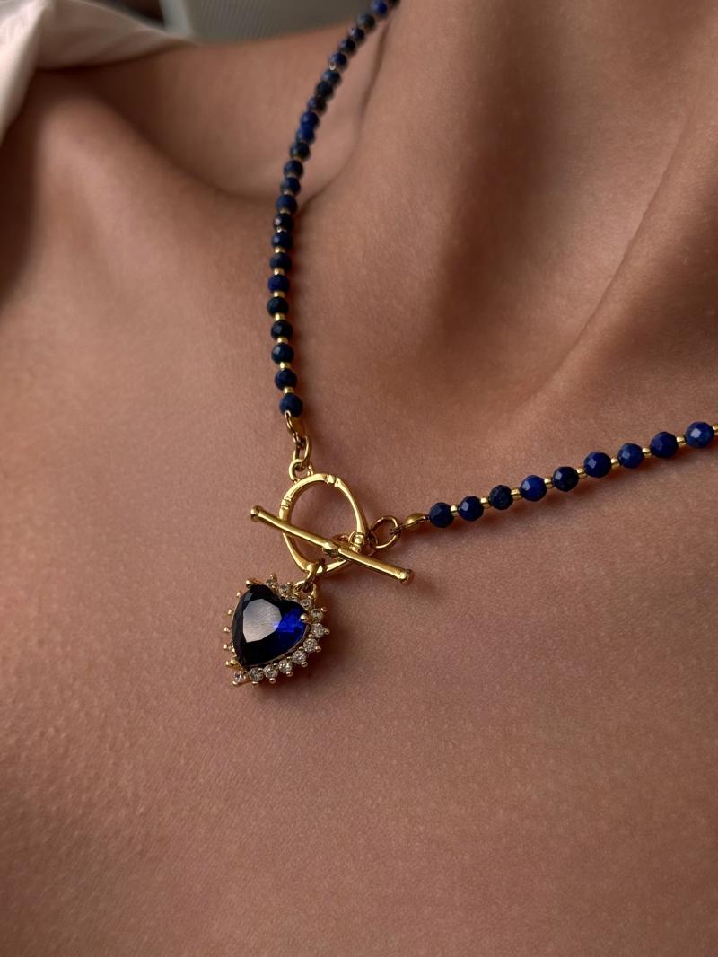 Космічне кольє з відбірного кришталю та ланцюжків з перламутровим кулоном