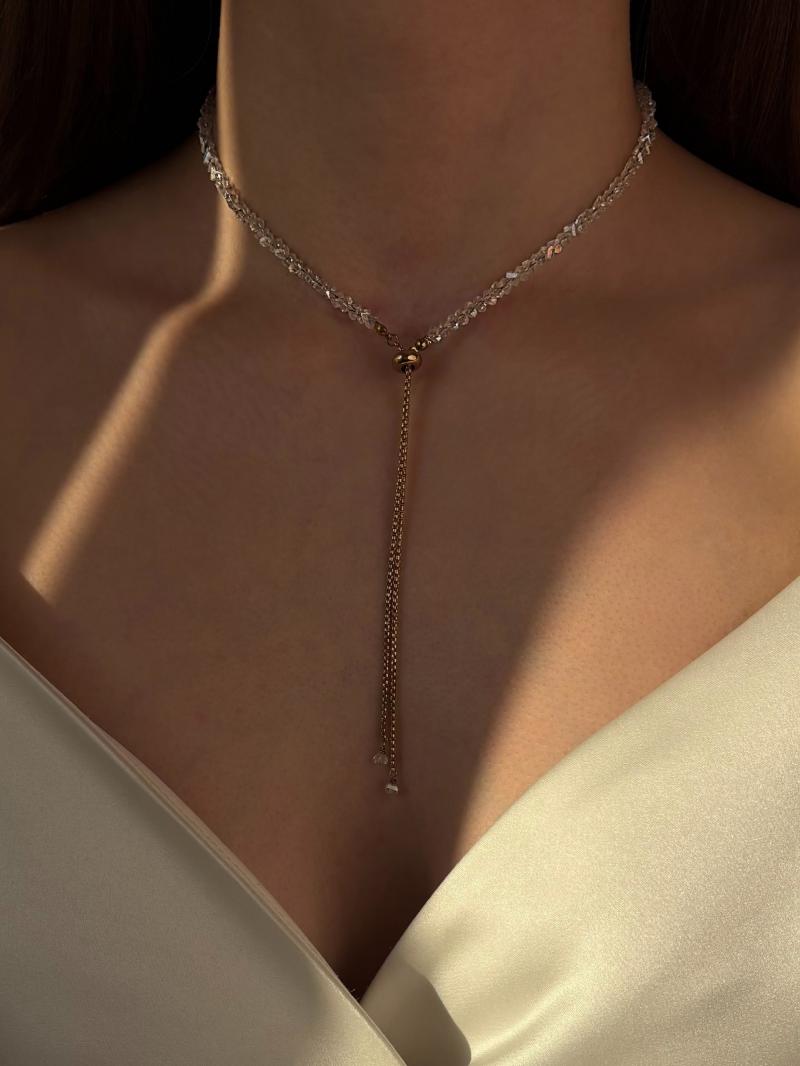Акцентний браслет з відбірного кришталю та ланцюжків