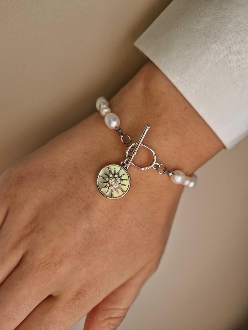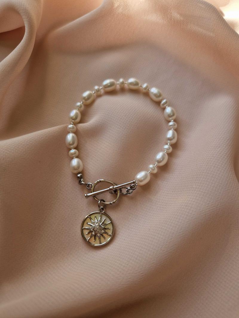 Браслет з натуральних перлин із застібкою тогл та перламутровим кулоном