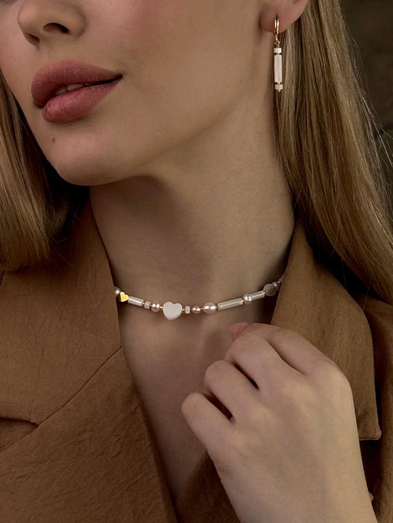 Стильний чокер з натурального перламутру та перлин