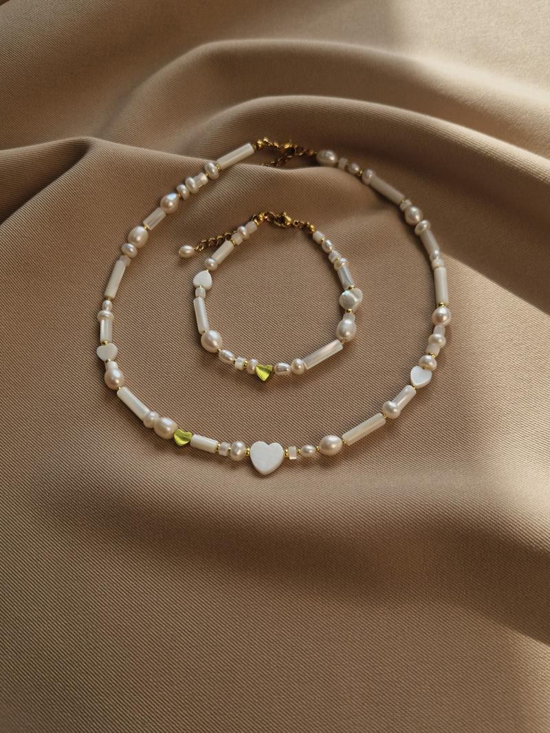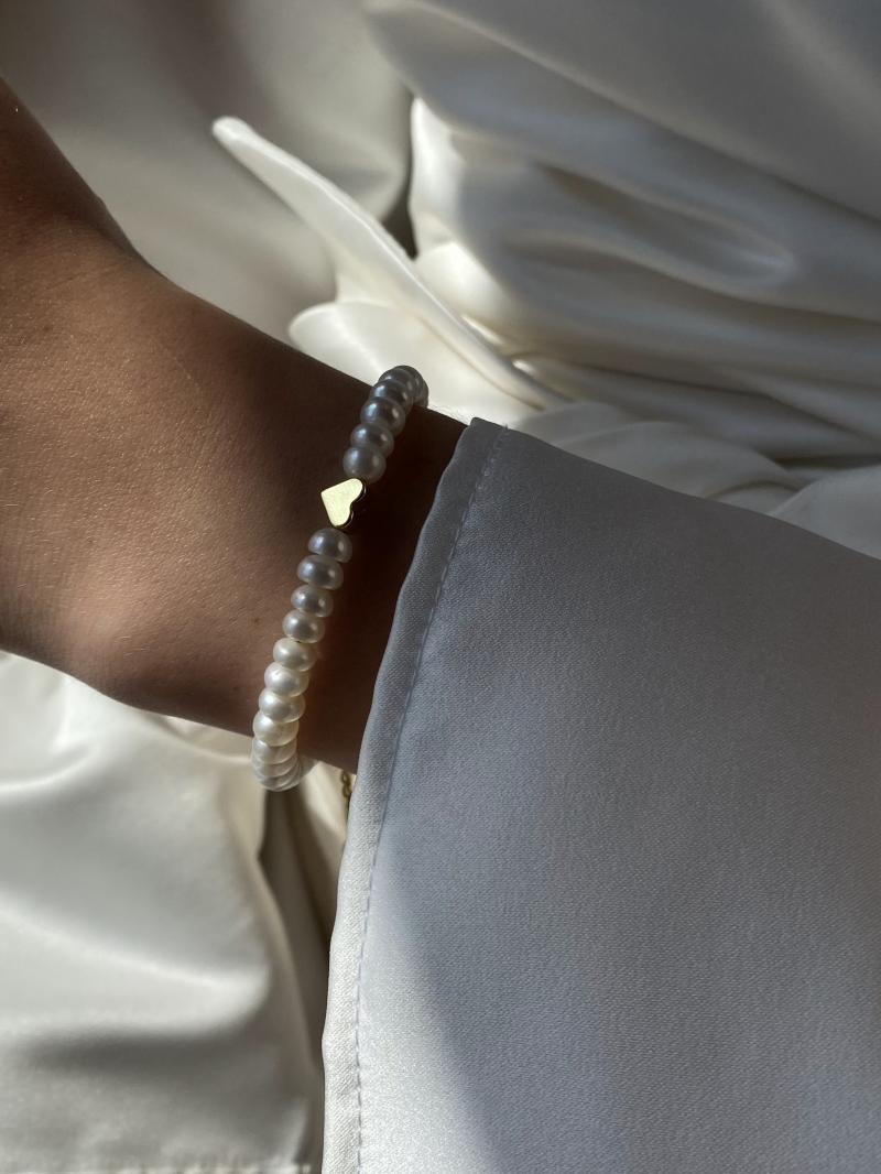 Ніжний браслет з натуральних перлин з намистиною серце