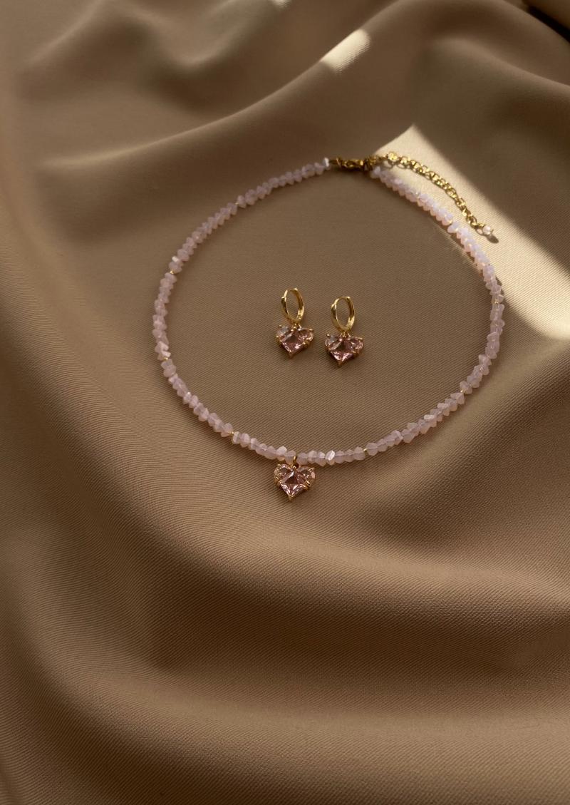 Чокер з матового кришталю рожевого кольору з кулоном серце