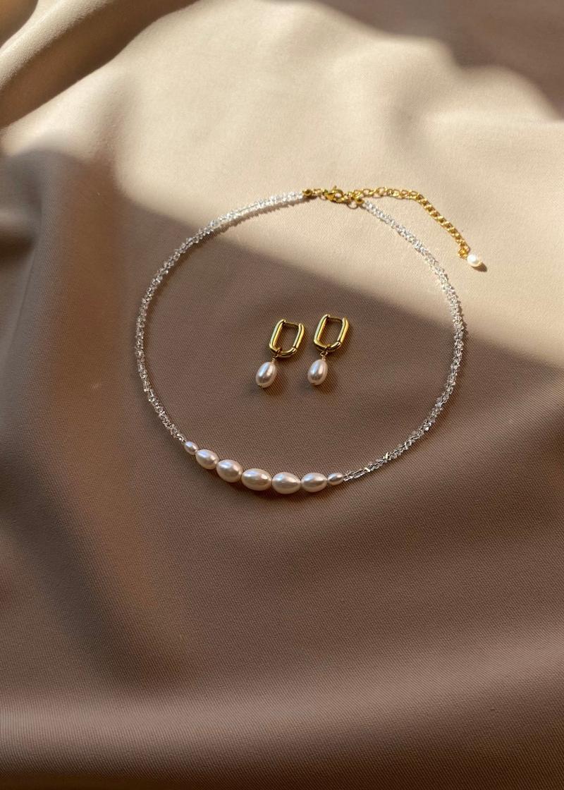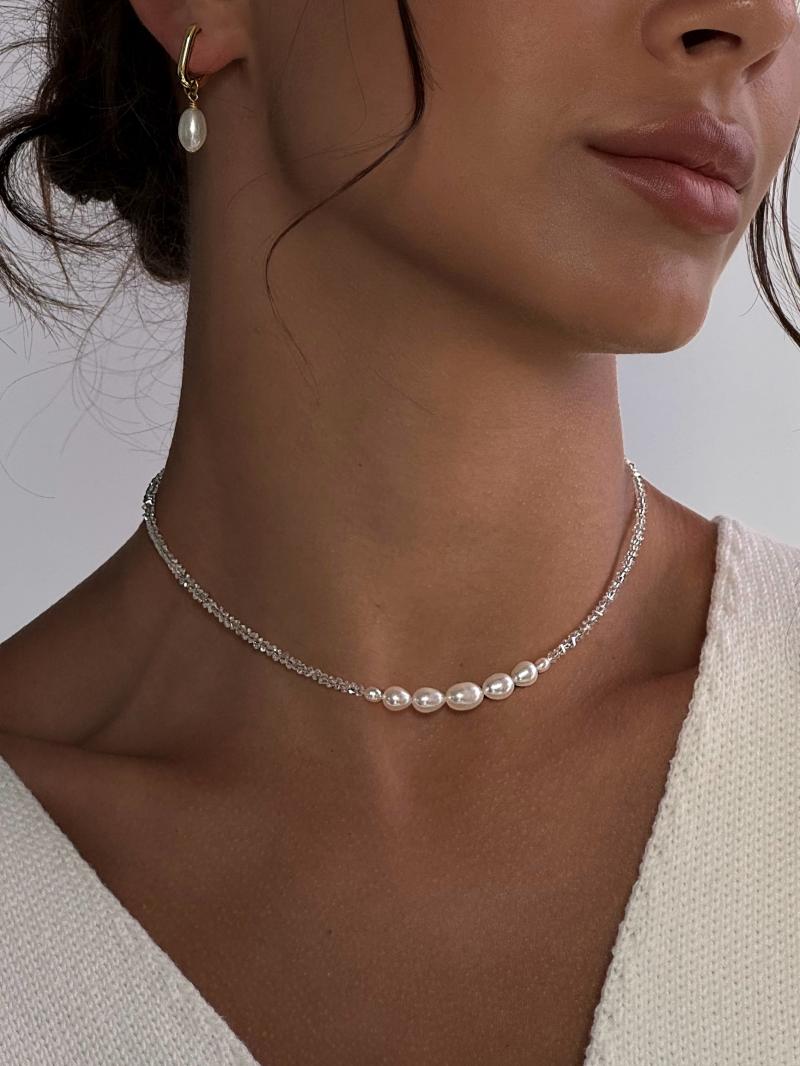 Чокер з прозорого кришталю та натуральних перлин