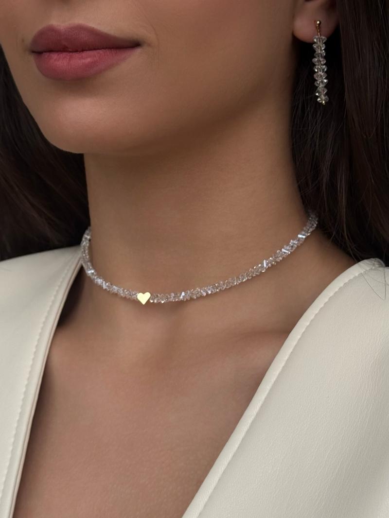 Сяючий чокер з прозорого кришталю із серцем