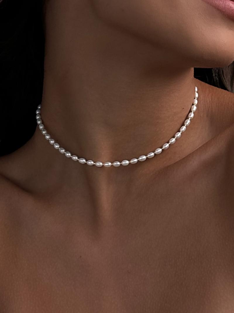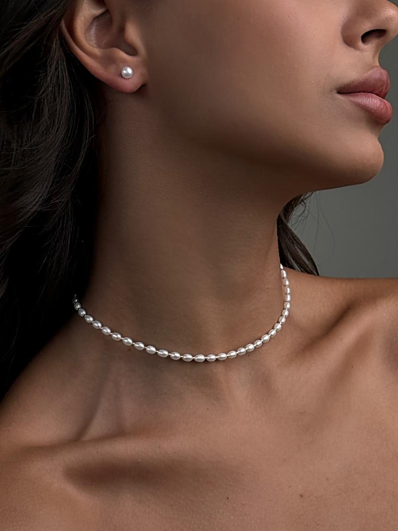 Витончений ланцюжок-краватка з натуральними перлинами