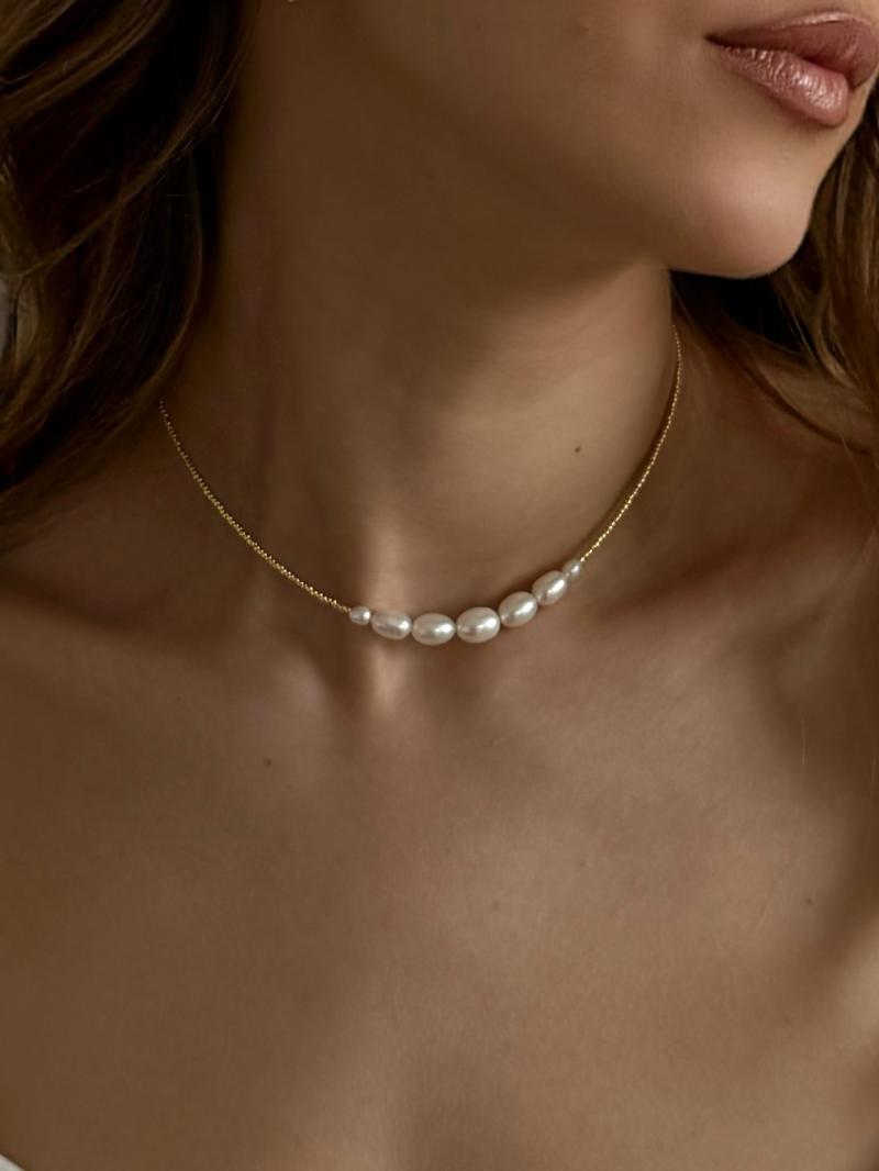 Вишуканий ланцюжок-краватка з натуральними перлинами