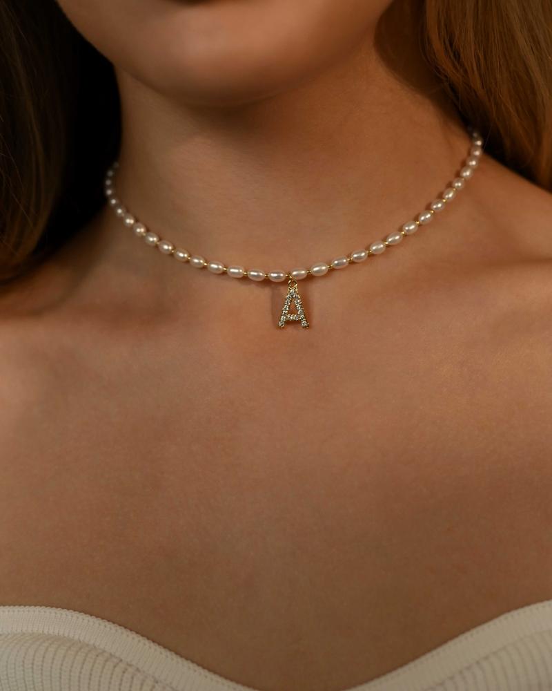 Мінімалістичний чокер з натуральних перлин з Вашою літерою