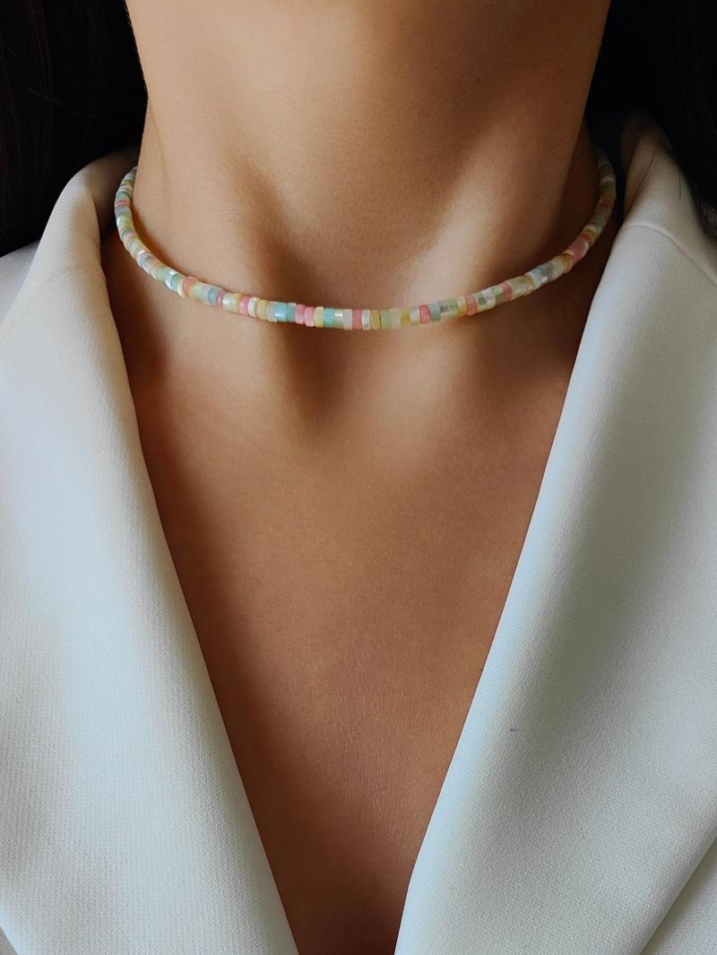 Чокер з сяючих фіанітів та японського бісеру з перламутровим сонцем