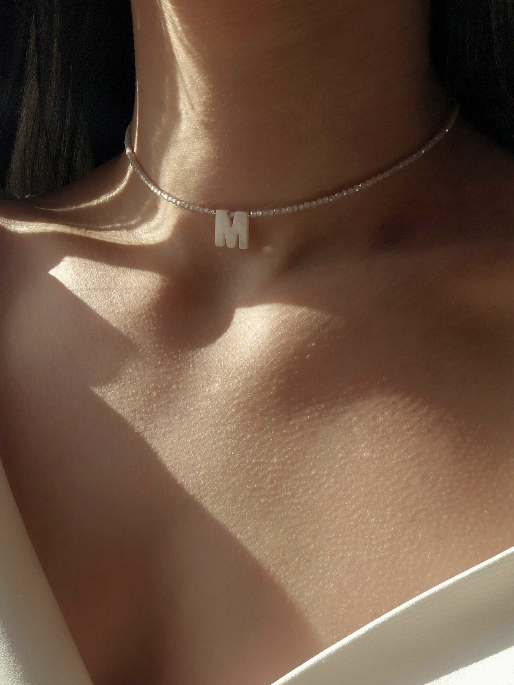 - Чокер з фіанітів з перламутровою літерою