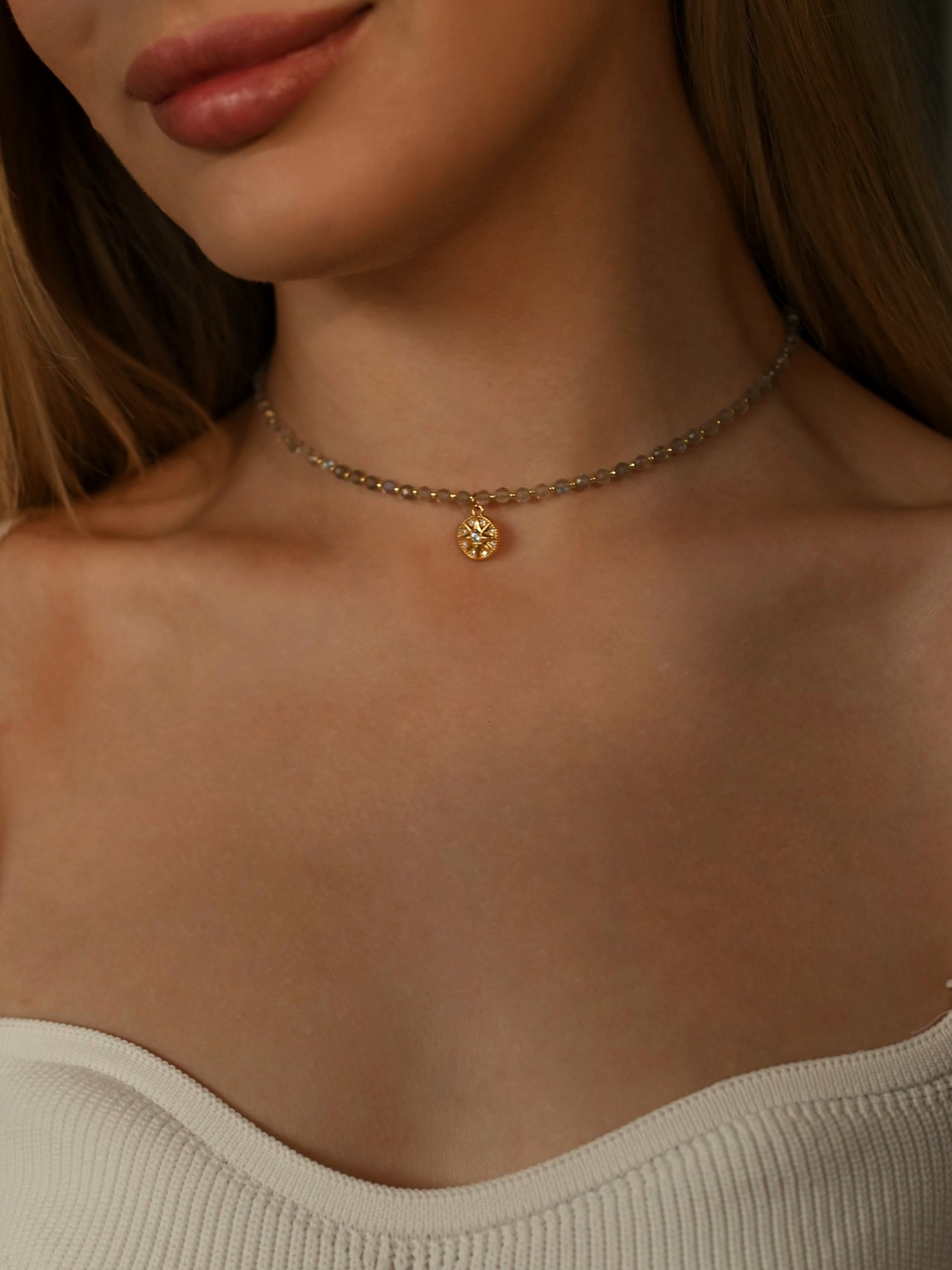 Чокер з натурального лабрадору з кулоном