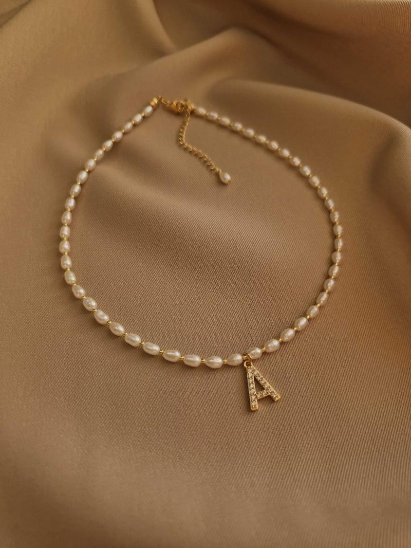 Мінімалістичний чокер з натуральних перлин з Вашою літерою