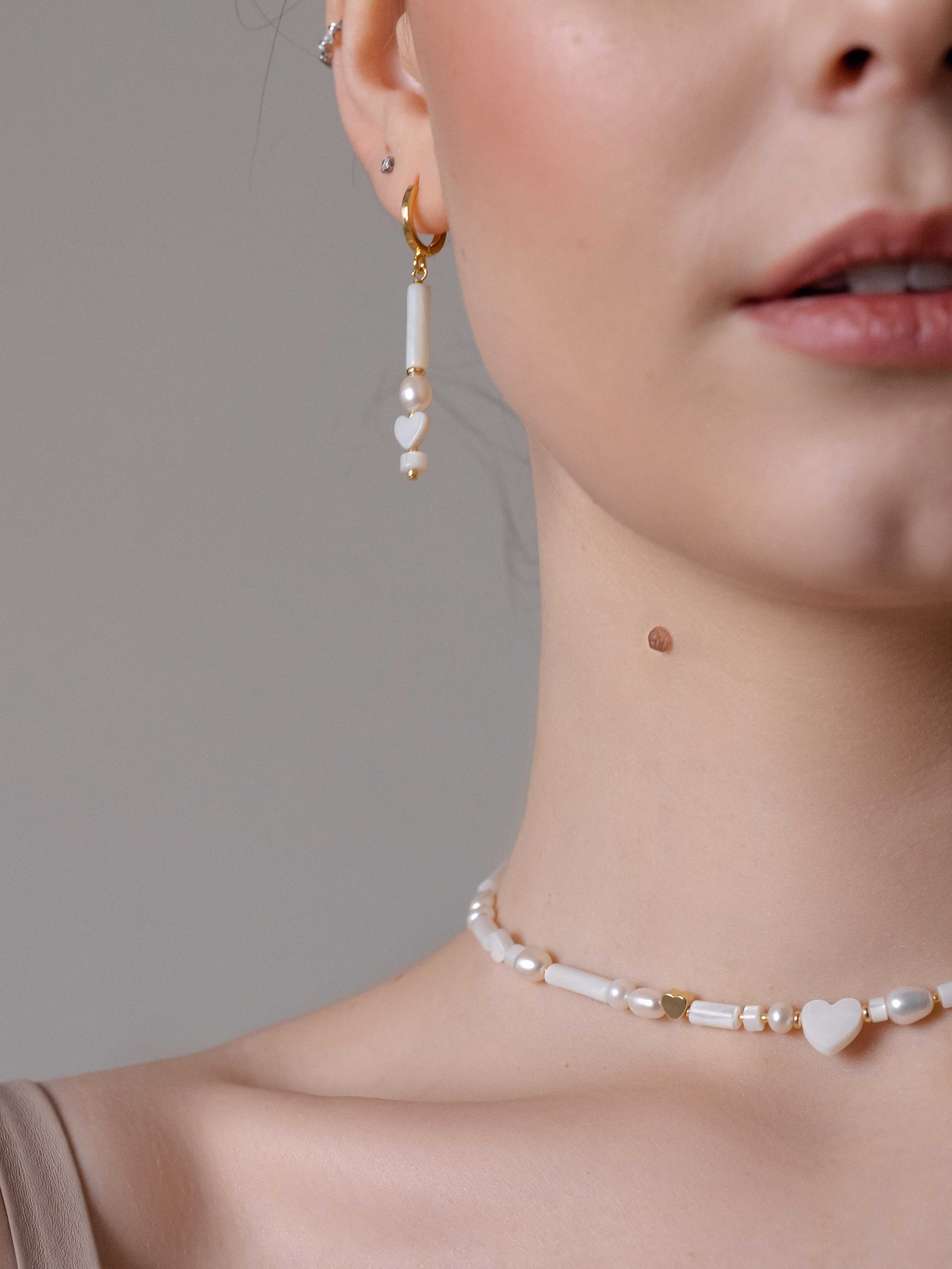 - Комплект: комбінований чокер з перламутру та перлин, сережки