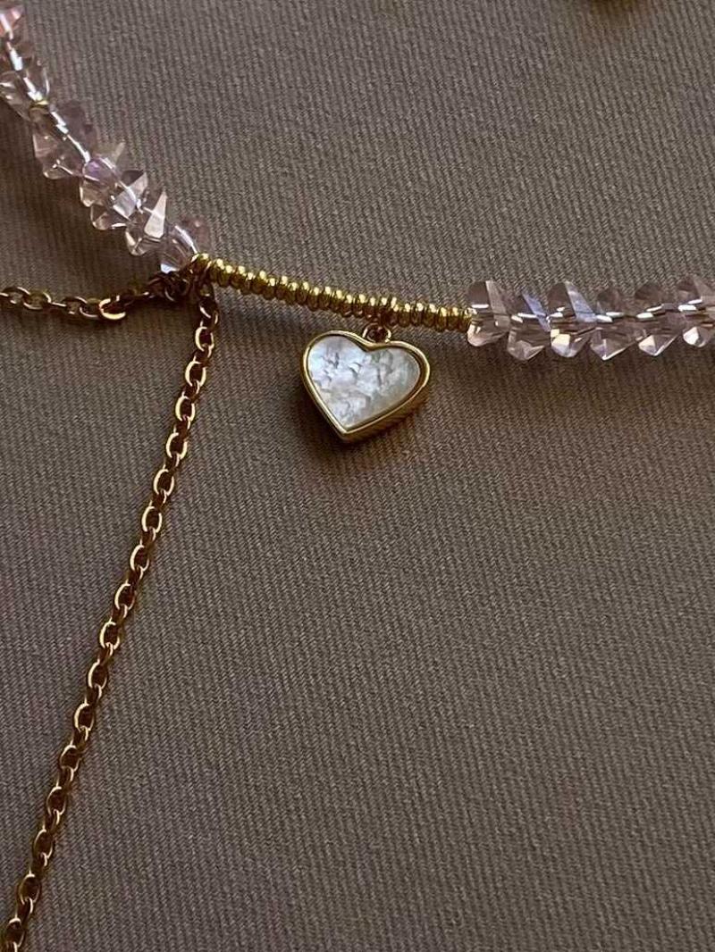 - Кольє з рожевого кришталю та ланцюжків з перламутровим серцем