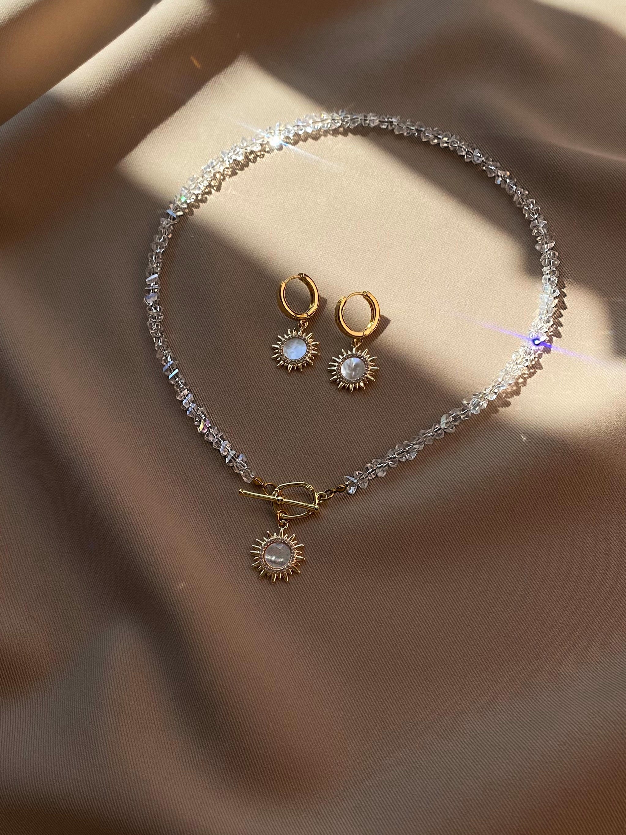 Кольє з відбірного кришталю з перламутровим сонцем