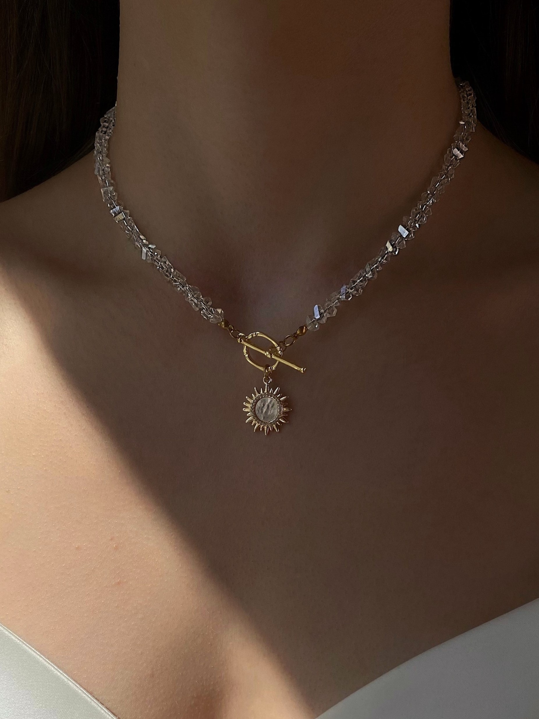 - Кольє з відбірного кришталю з перламутровим сонцем