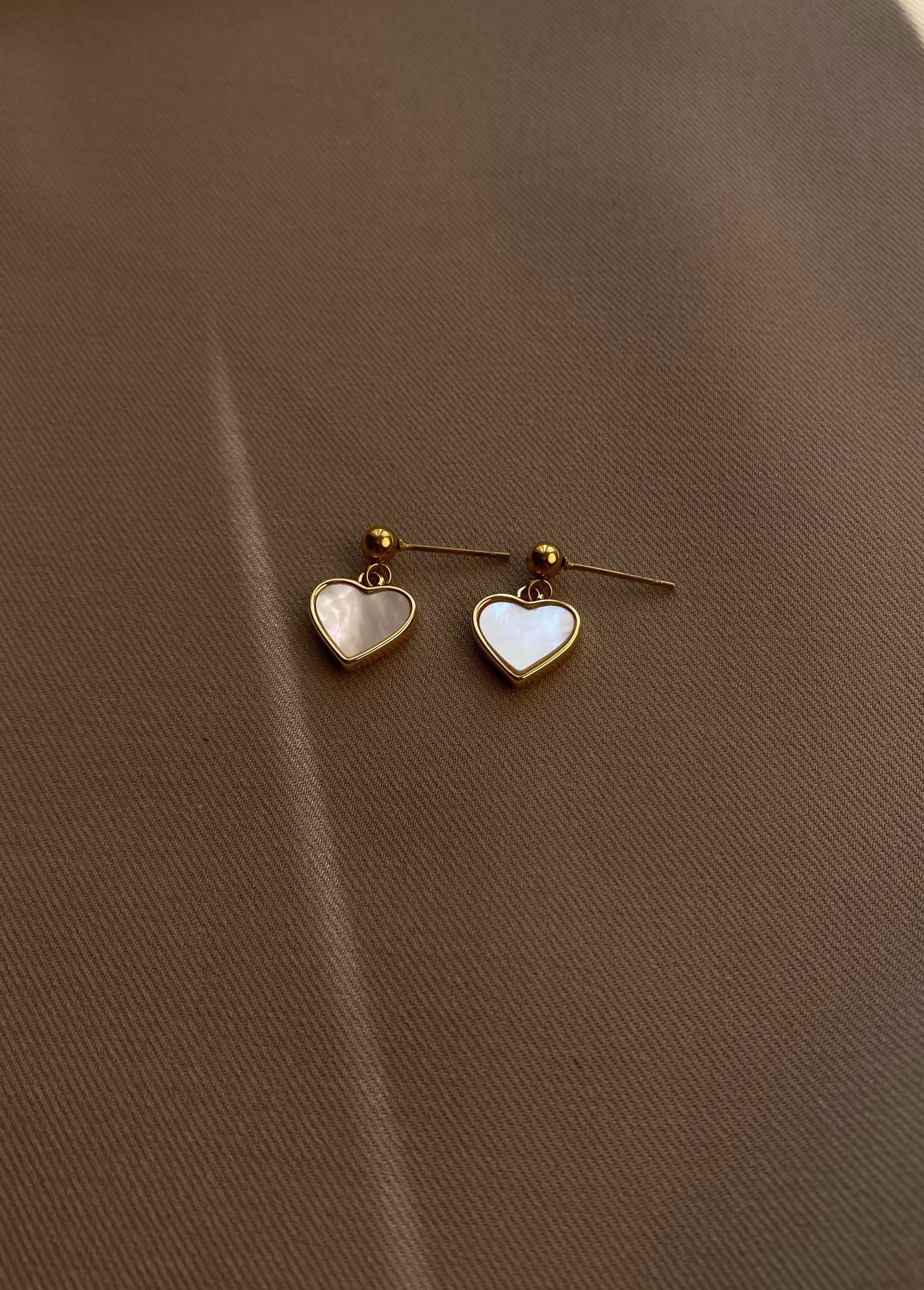 - Сережки-гвіздочки з перламутровими серцями