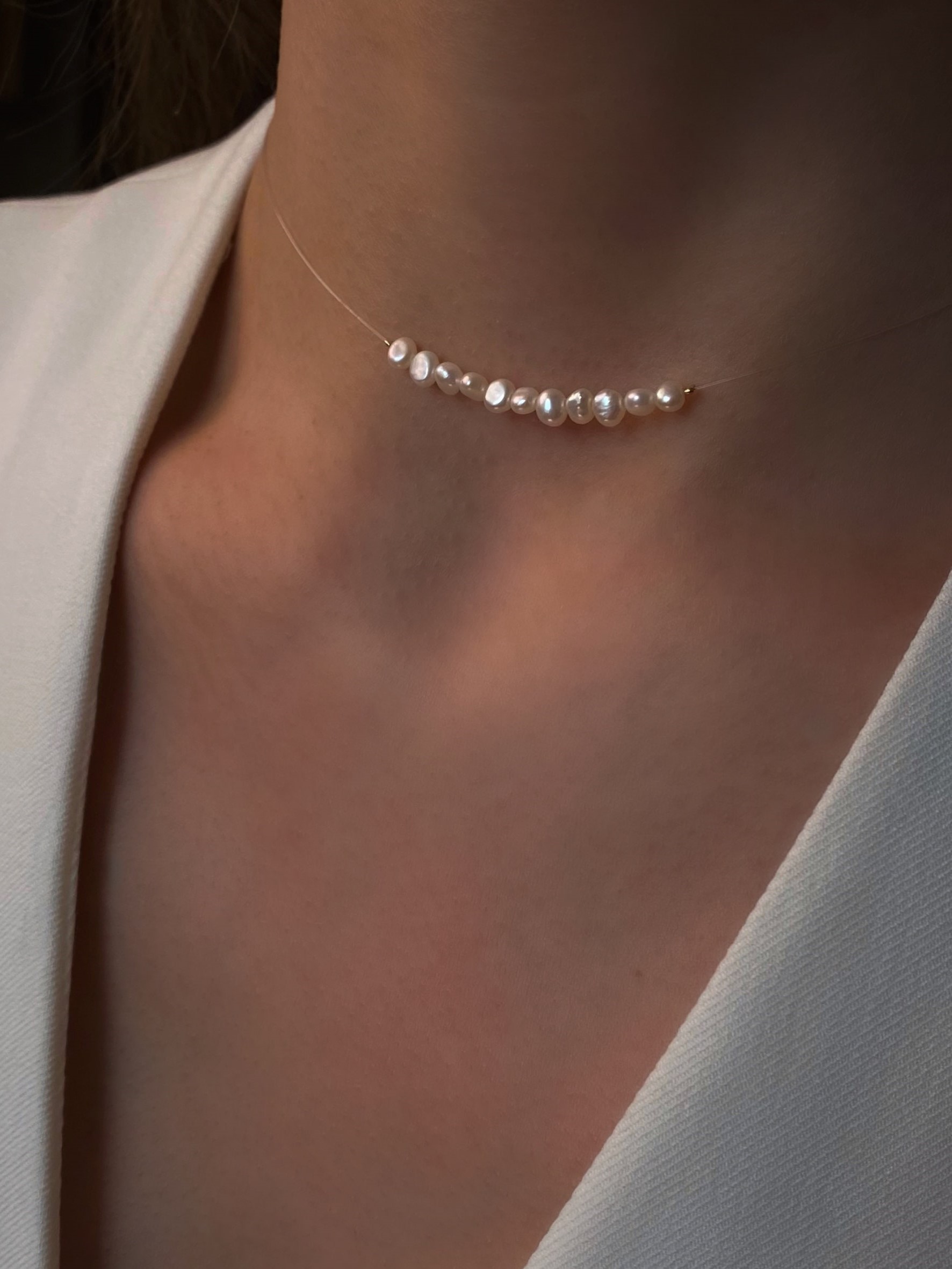 Чокер з натуральними перлинами на прозорій основі