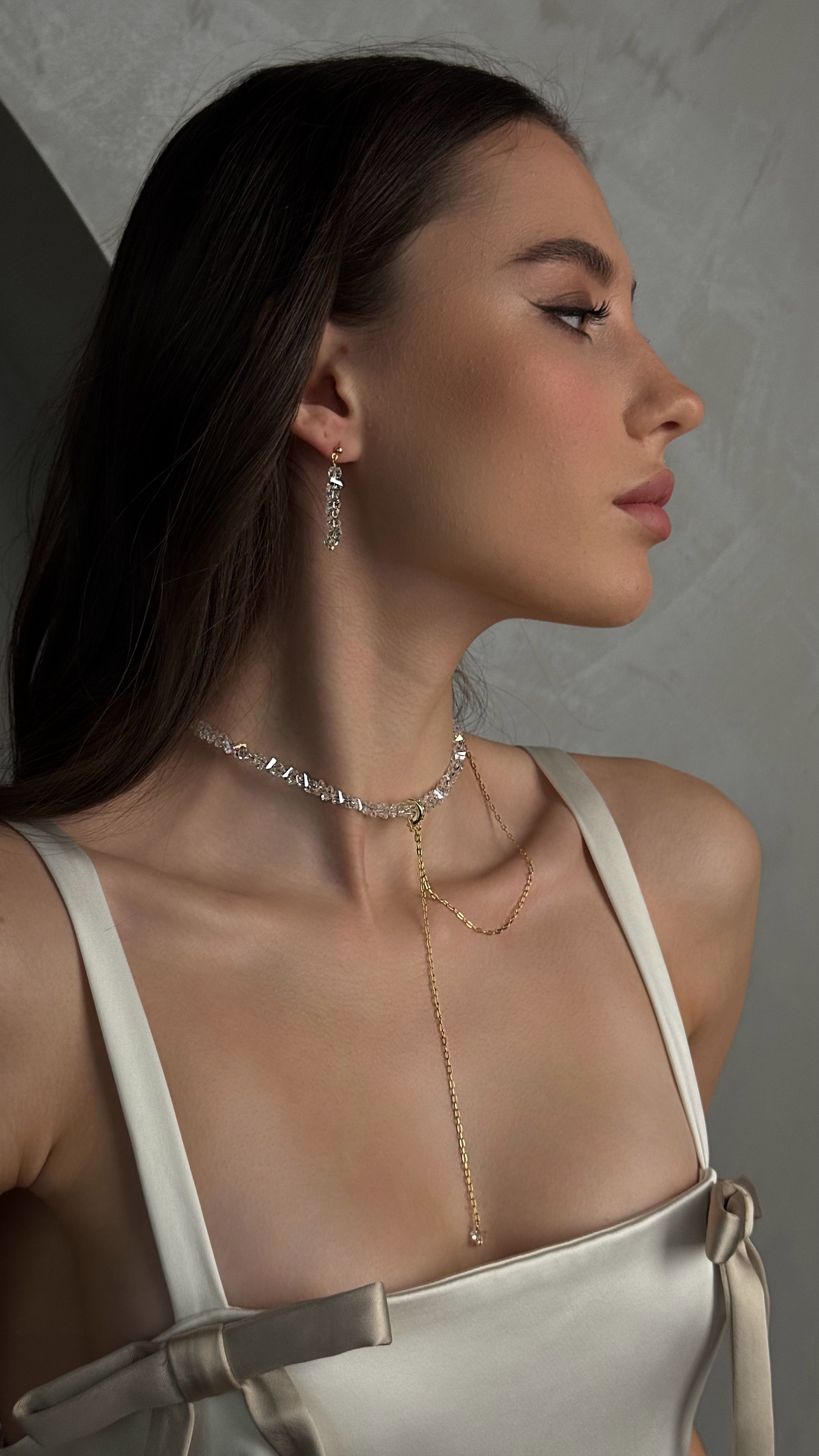 Кольє з прозорого кришталю зі з'ємною краваткою