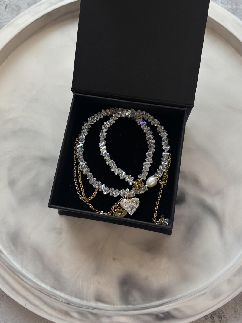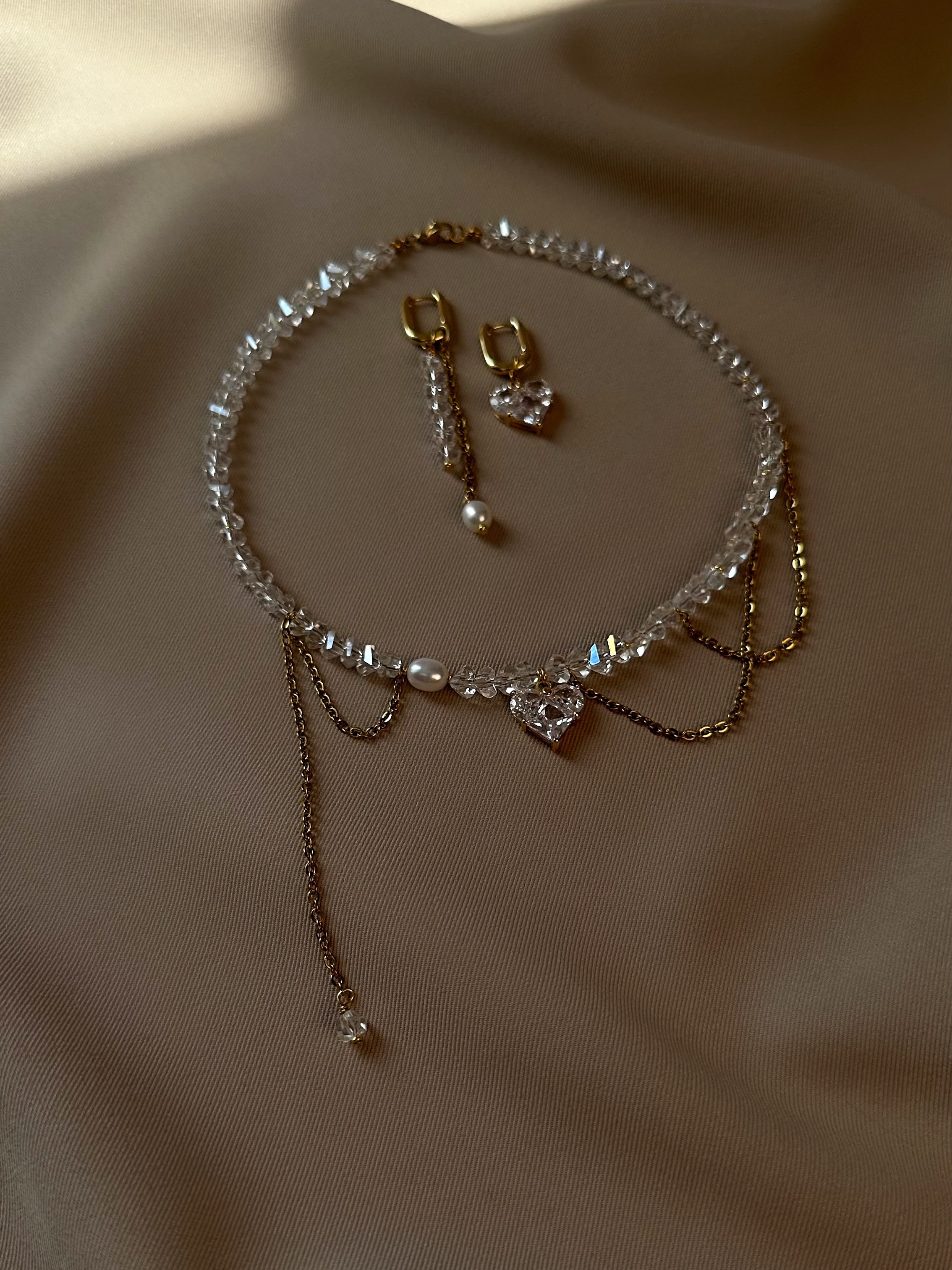 - Кольє з прозорого кришталю та ланцюжка з кулоном серце