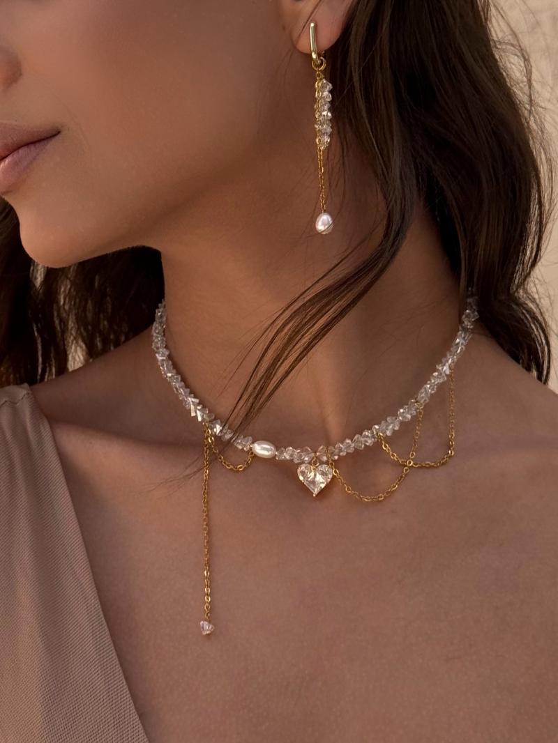 Кольє з прозорого кришталю та ланцюжка з кулоном серце