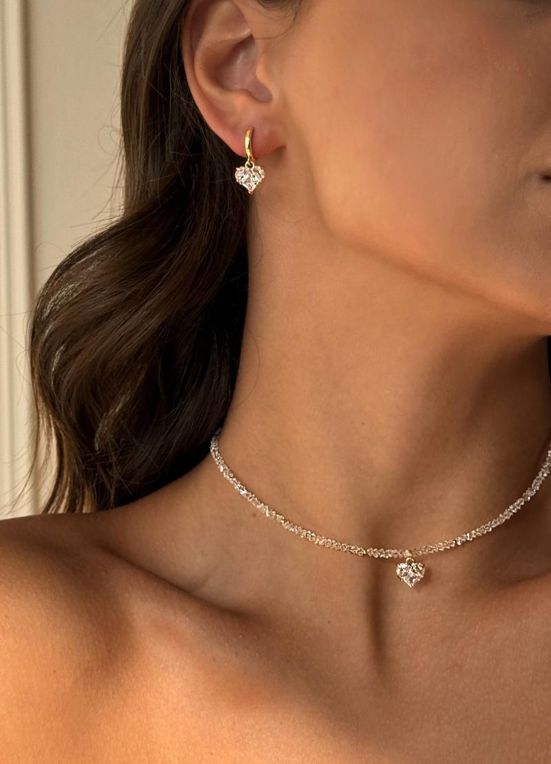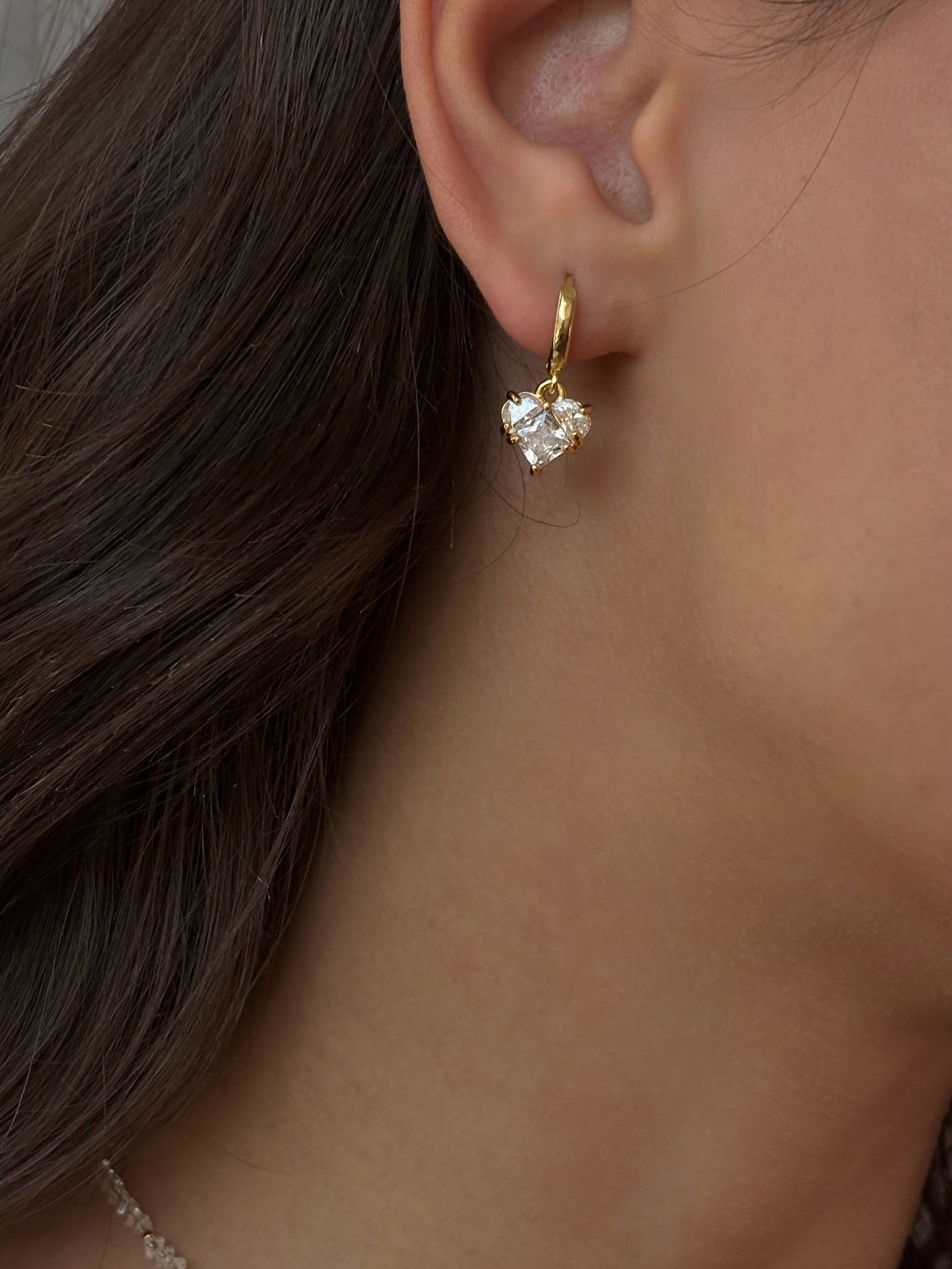 - Сережки з прозорими фіанітами у формі сердець