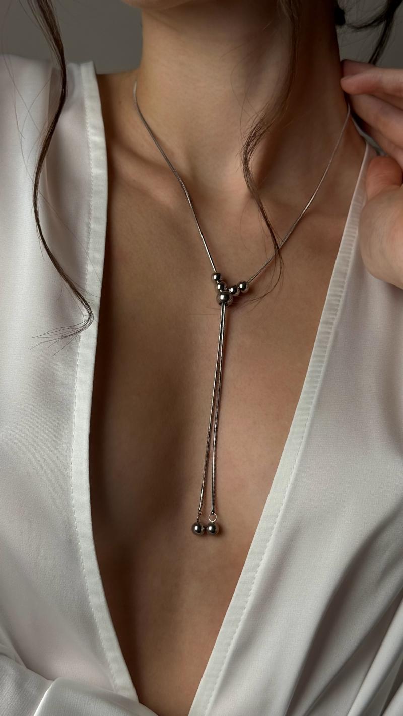 - Ланцюжок-краватка з кульками з ювелірної сталі