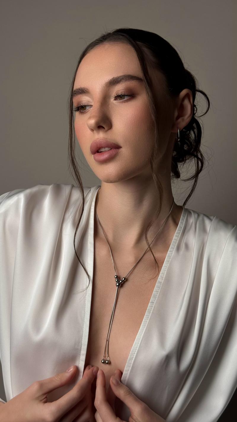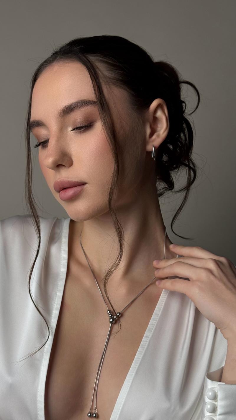 Трендова краватка, яку можна носити по-різному та трансформувати її під різні образи. Матеріал нержавіюча ювелірна сталь (у срібному кольорі). Розмір універсальний. Замір шиї моделі впритул 29 см.