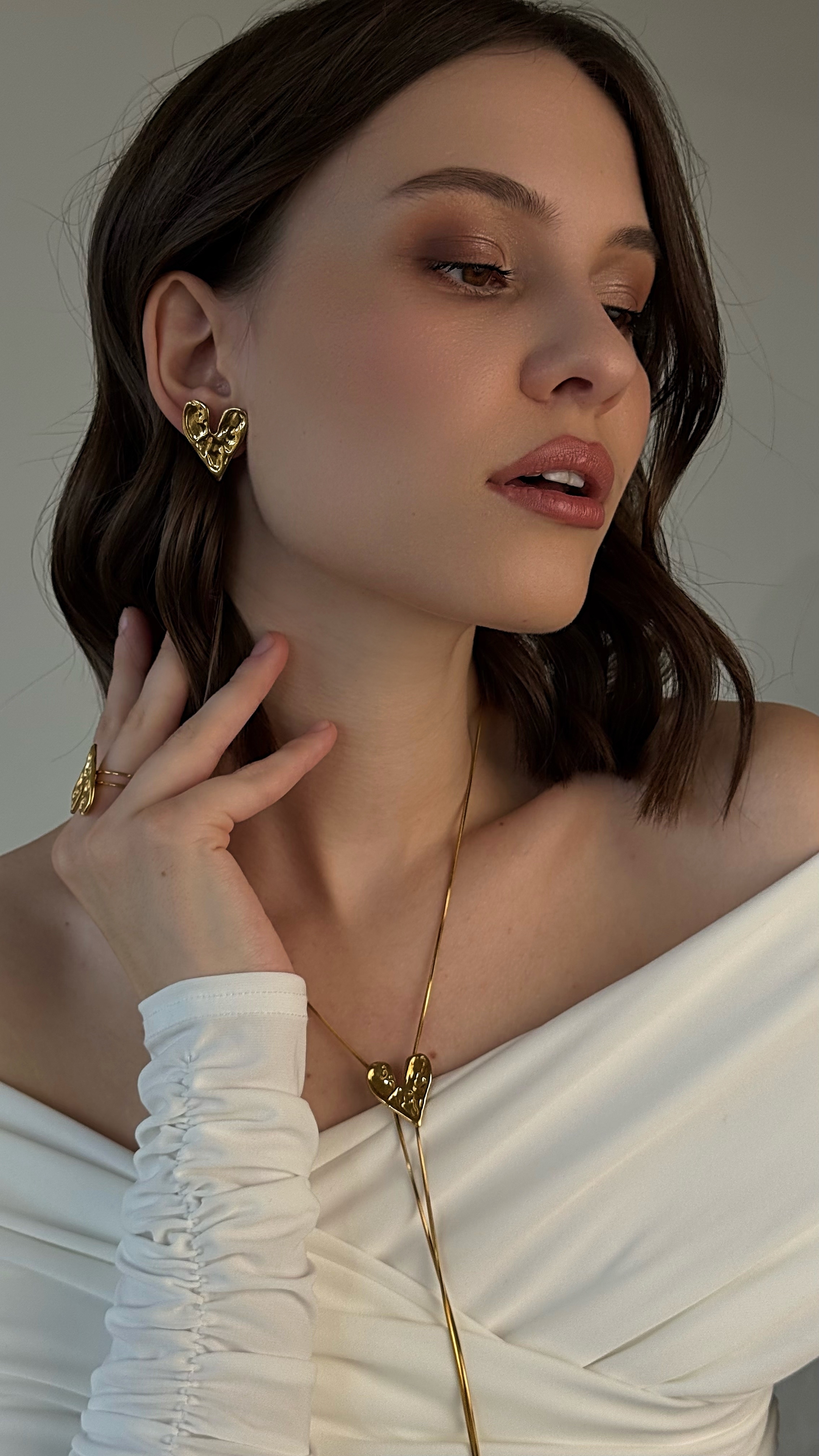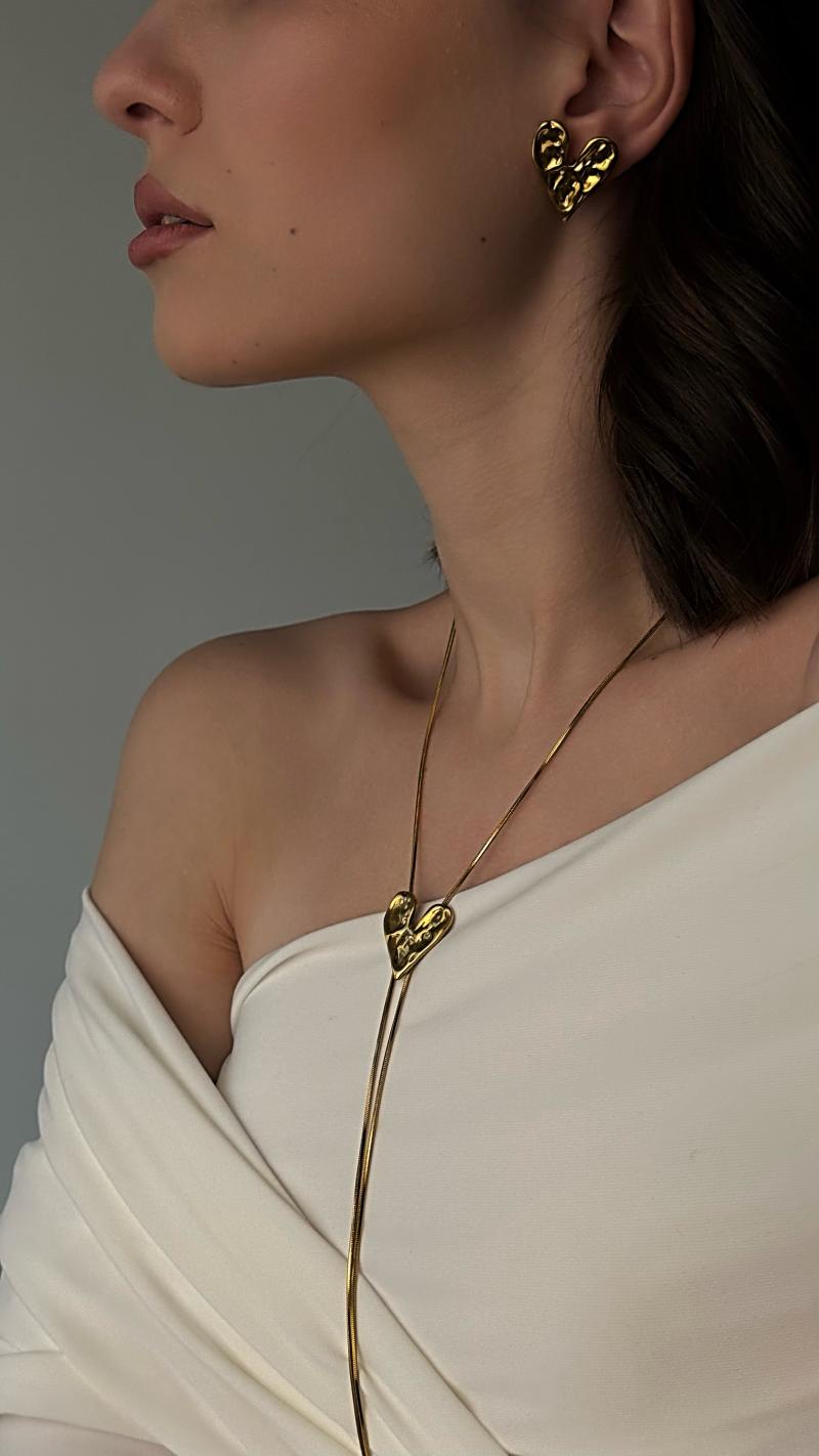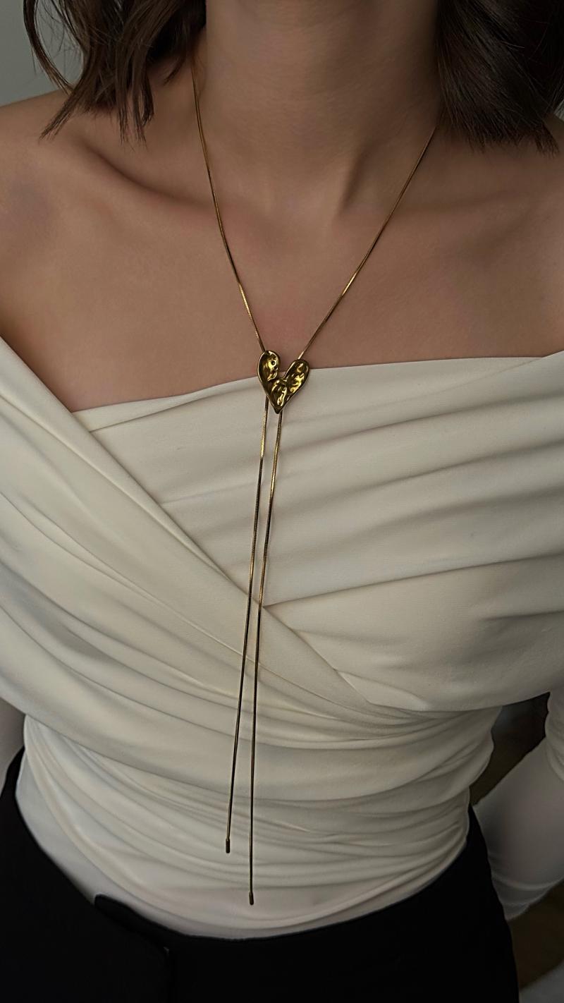 Краватка з серцем, яке регулюється по довжині. Матеріал нержавіюча ювелірна сталь (у золотому кольорі). Стандартна довжина 45 см, розмір універсальний