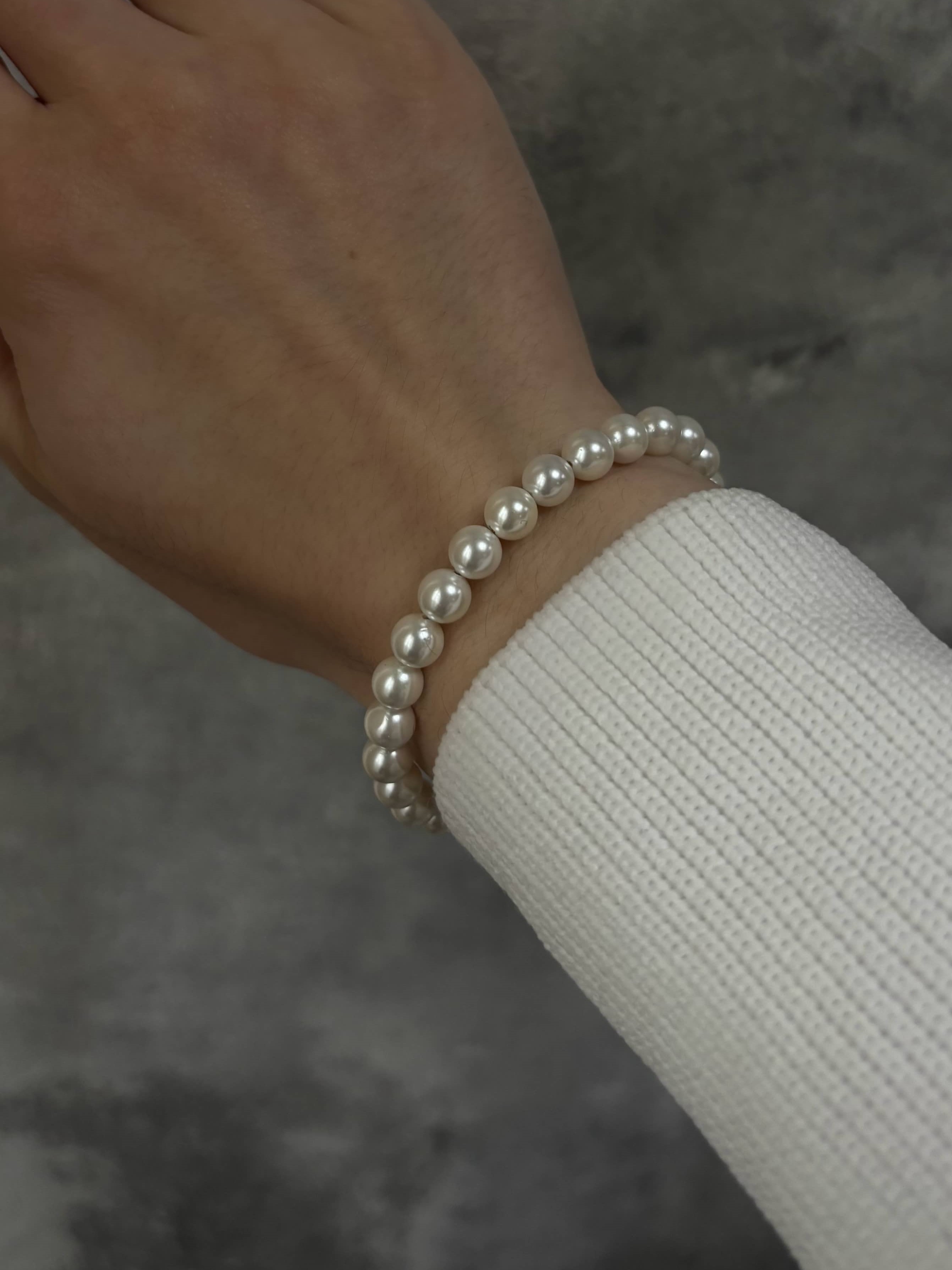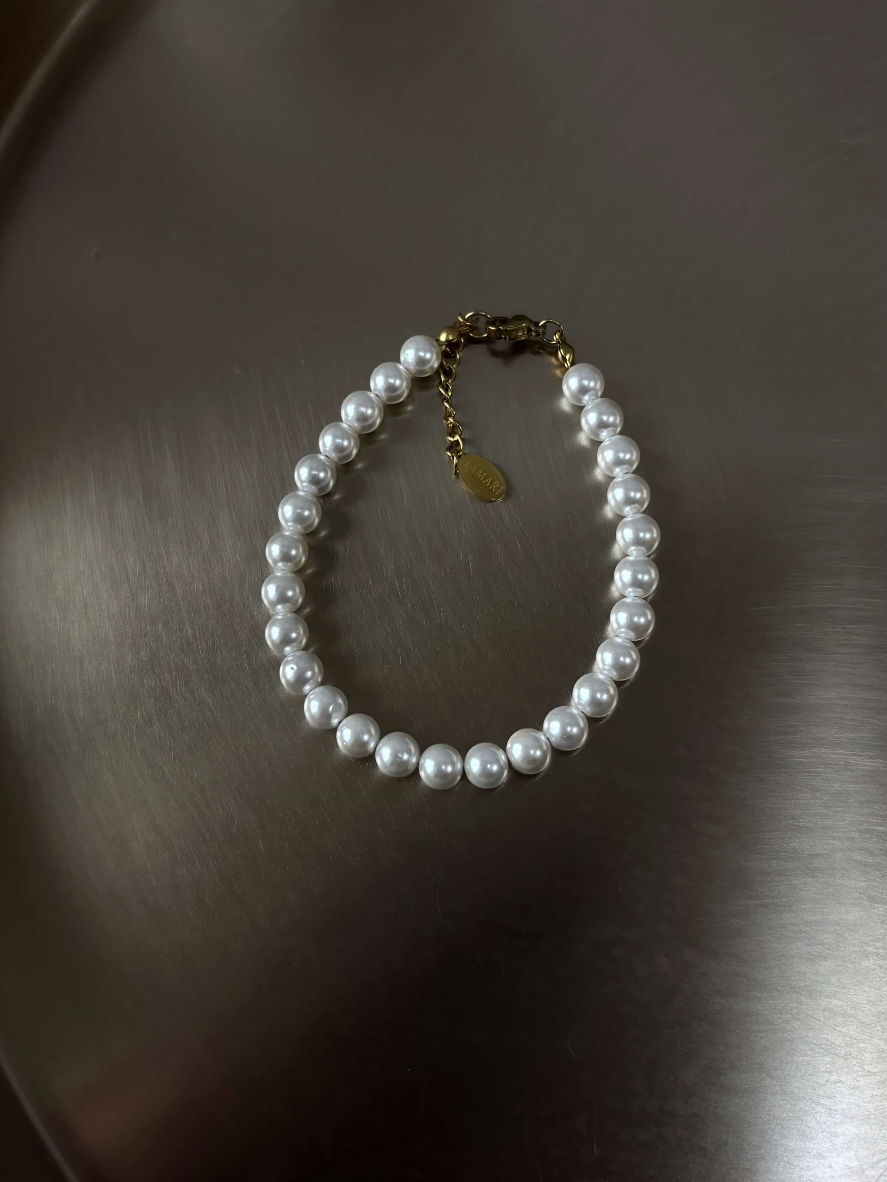 Браслет з надзвичайно блискучих перлин Майорка. Матеріал фурнітури ювелірна нержавіюча сталь та латунь з покриттям позолоти 18 карат (у золотому кольорі).