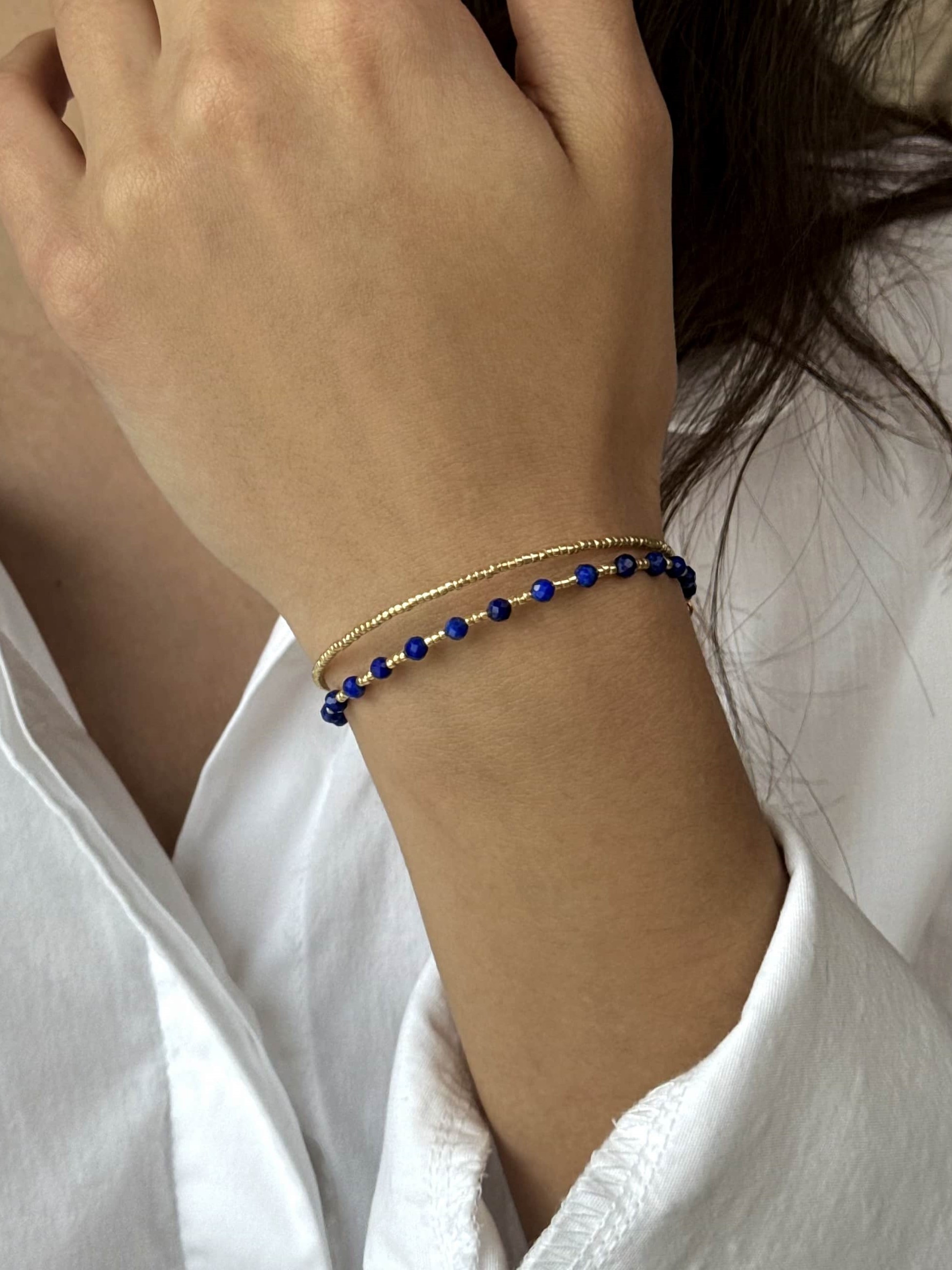 Браслет з натурального лазуриту та японського бісеру. Фурнітура ювелірна сталь (у золотому кольорі). Бісер з гальванічним покриттям.