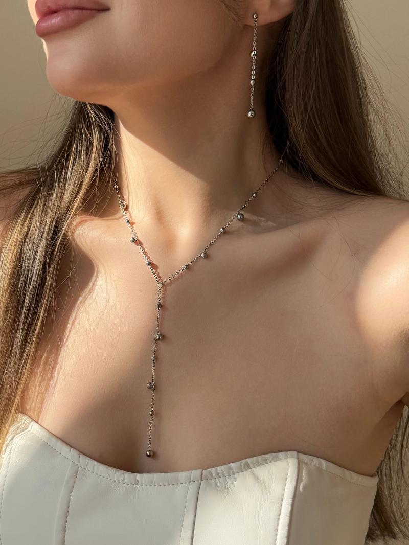 - Подовжені сережки з кульками з ювелірної сталі