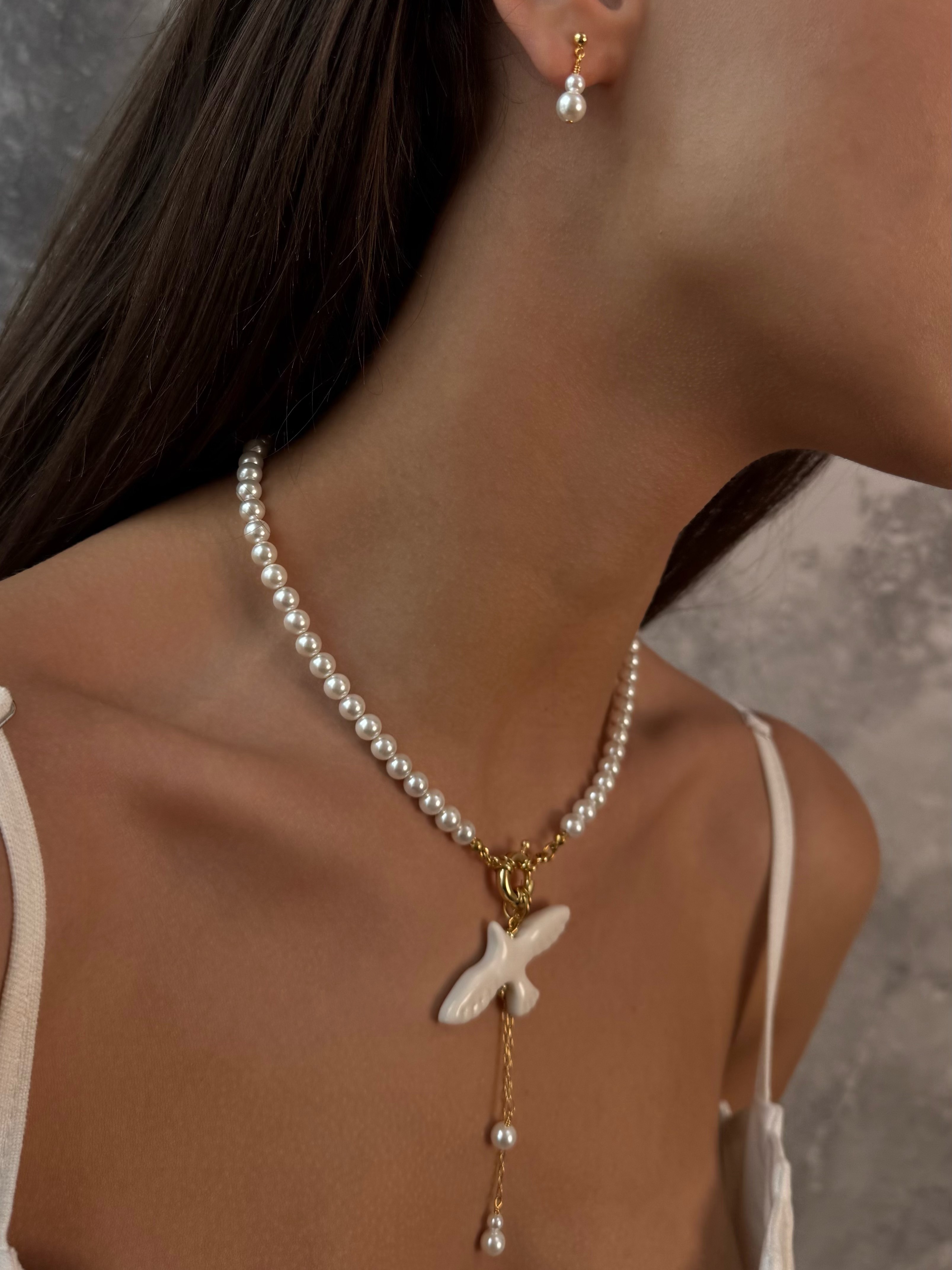 Кольє з перлин Майорка з горлицею