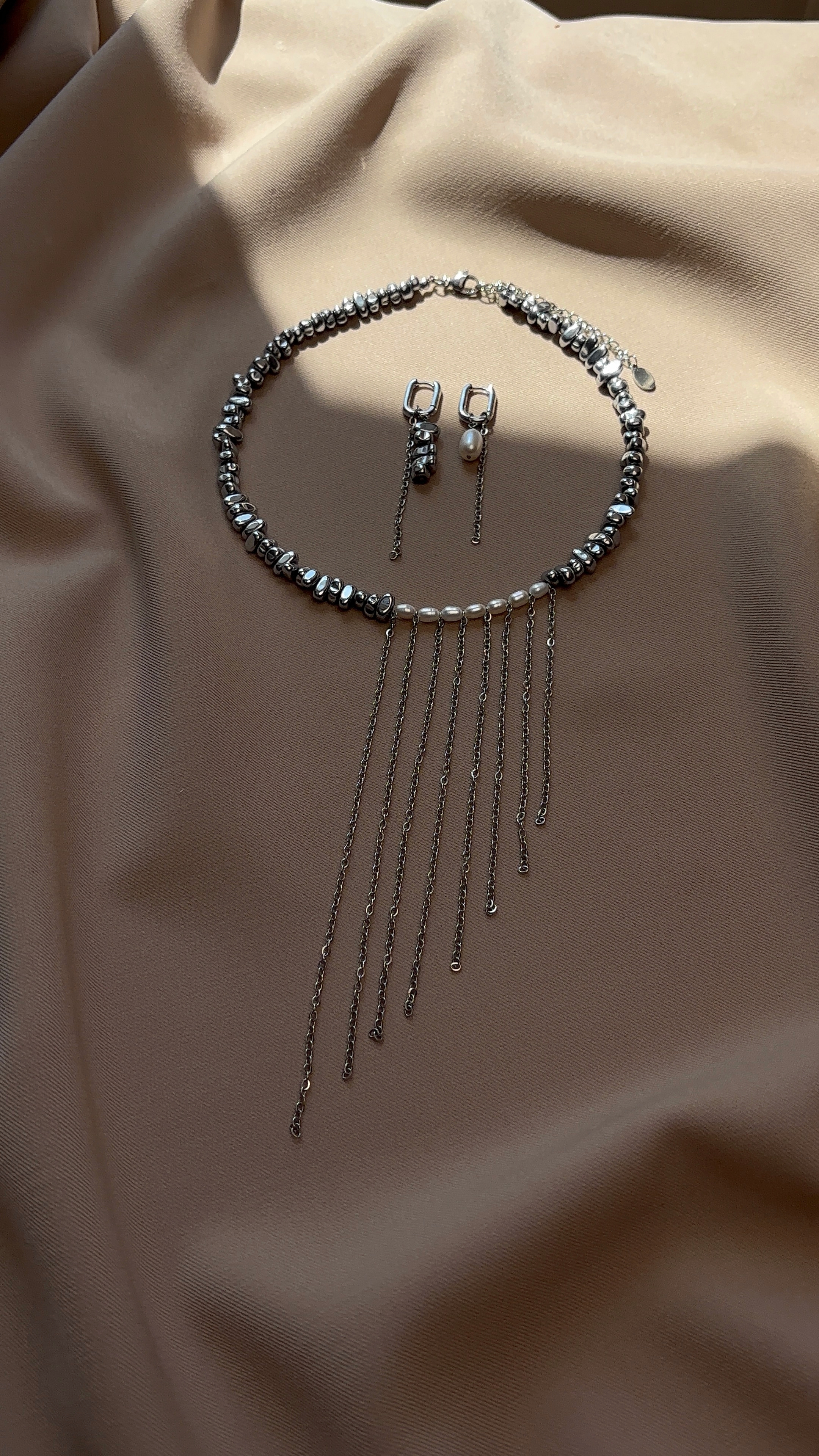 Сережки-трансформери зі з'ємними підвісками (гематит та перлина). Основи базові, можна носити самостійно. Зручна застібка. Не важкі. Гіпоалергенні. Матеріал застібки латунь з покриттям родій (у срібному кольорі).