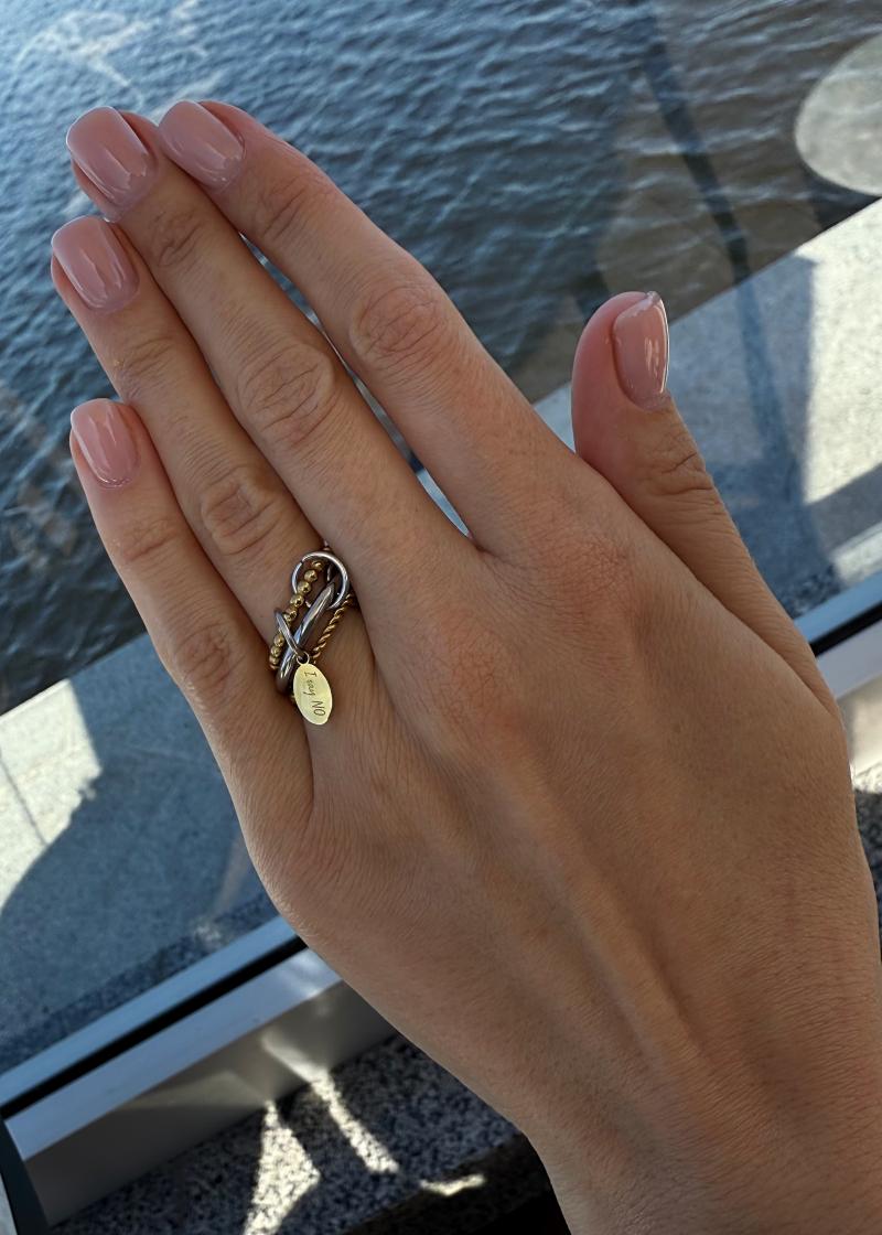 Акцентна каблучка "I say No" біколор з ювелірної сталі. Матеріал ювелірна нержавіюча сталь (у золотому та срібному кольорі). Не темніє